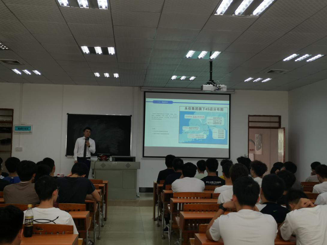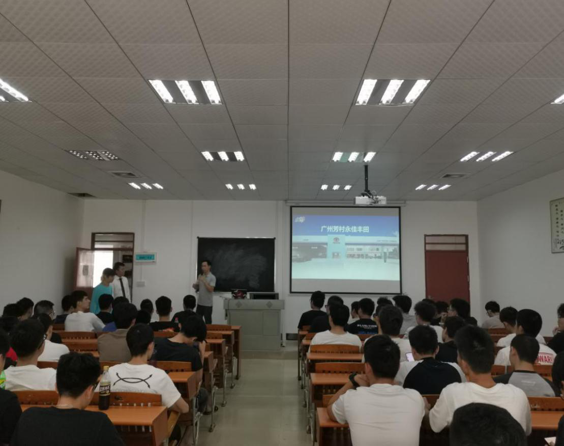 2020年10月27日下午14:30分,由广州永佳丰田公司派的代表:黄经理、蒋助理,在汽车工程学院多媒体201教室里对全体大二学生公开招聘宣讲。
