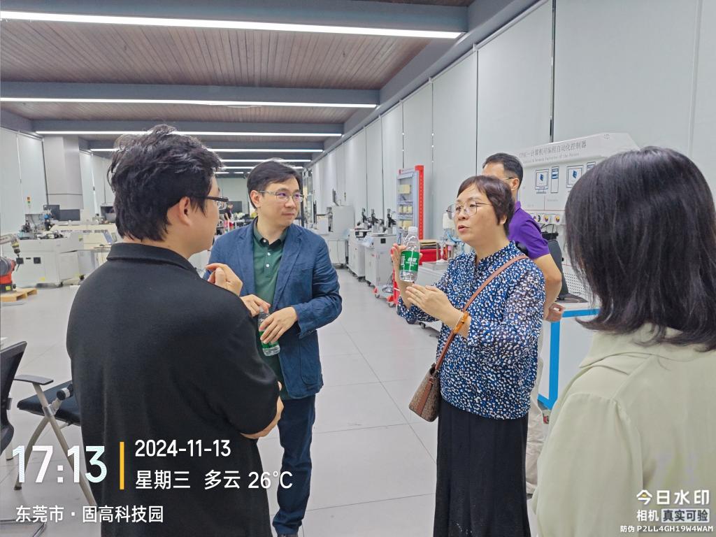 为构建高水平产教融合的新工科产业创新型人才的培养模式,2024年11月13日下午,由智能制造与汽车学院院长祝常红组织带队,与学院相关专业负责人组成代表团走访位于东莞市松山湖的固高派动(东莞)智能科技有限公司(简称“固高科技”)、茵赛普科技有限公司。固高(深圳)科技中央研究院研究员、茵塞普科技联合创始人庞程和固高派动(东莞)智能科技有限公司王盼热情接待。代表团参观了固高科技在东莞松山湖的XbotPark机器人基地总部、固高科技和茵赛普科技有限公司在运动控制器、驱控一体、电机驱动器、机器视觉与机器人定标系统、软件平台、工业自动化组件和教学装备等方向的核心产品、研发中试车间和工业机器人控制与应用实验室。