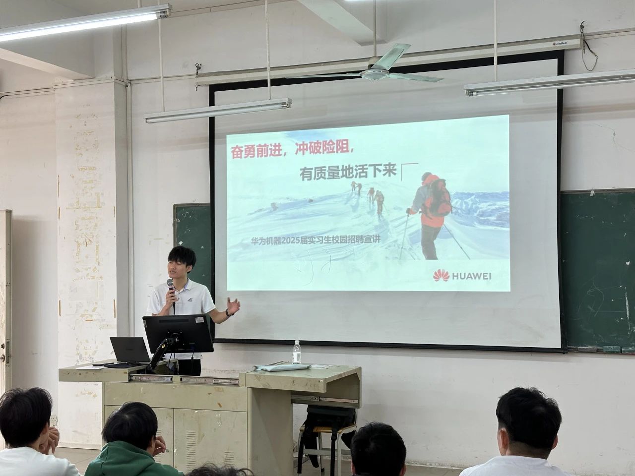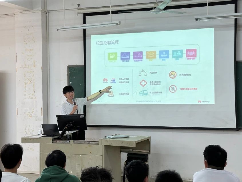 2024年11月27日下午15:30分,中南教育科技(深圳)有限公司与华为机器有限公司联合举办的2022级实习生校园招聘宣讲会,在智能制造与汽车学院(广州校区)博学楼C501顺利举行。参加此次宣讲会人员有中南教育科技(深圳)有限公司/华为机器有限公司专员、智能制造与汽车学院的领导老师以及22级学生。