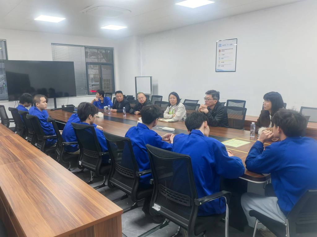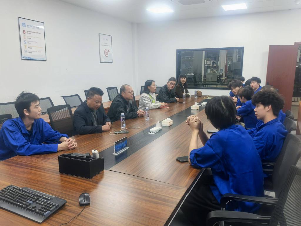 在洽谈中,智能制造与汽车学院教师团队就学校学科优势、人才培养等做了介绍,与企业共同探讨新能源汽车行业的发展趋势、人才需求等关键议题,双方针对专业建设、实习就业指导、校企合作等进行了充分地讨论和交流。双方就未来合作和发展方向达成共识,表示将继续保持良好的沟通与对接,为学生提供更多实践机会和就业选择。同时也代表学院看望学生,对学生的实习情况进行了详细的了解,提醒学生实习过程中要遵守企业的规章制度,安全生产,鼓励学生克服困难,学好技能,为就业奠定基础。