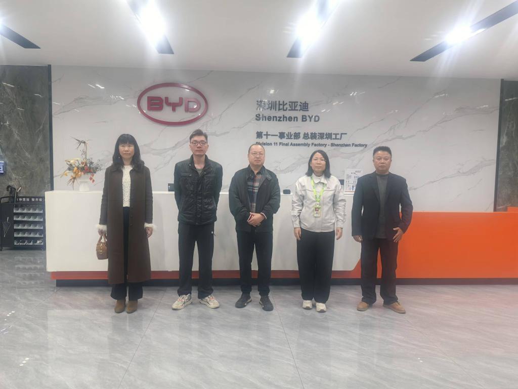 2024年12月26日,智能制造与汽车学院汽车教研室主任吴刚教授带队,陈灿林、李纪聪和周逊老师一行4人,到深圳比亚迪工厂进行访企拓岗活动和关怀实习的学生。