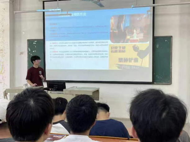 班会课上,各团支书通过播放禁毒宣传片、互动提问等形式,引导学生认识了毒品的种类与危害,向学生们深入浅出地讲解毒品的种类、外观、对人类的危害和如何辨识和防范毒品,其重点认识新型毒品及如何保护自己免受毒害的同时,号召广大学生树立科学、文明、健康的生活理念,提高自身毒品防范意识的同时,将禁毒知识带给身边的亲人、朋友,同心协力抵制毒品侵害。同时,劝导学生远离不利于健康成长的娱乐场所,积极参与有益身心健康的文体活动,养成良好、文明的生活习惯。