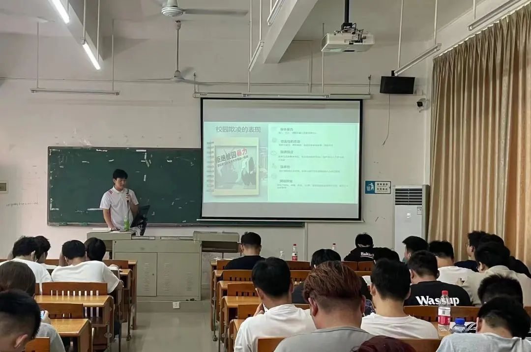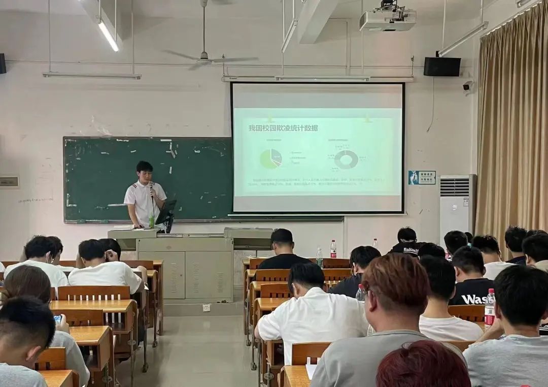 在主题班会课上,各班团支书向同学们讲解了有关校园欺凌的常识,利用案例分析,展示了校园欺凌给受害者带来的伤害及严重后果以及哪些行为是属于校园欺凌,校园欺凌会造成哪些危害,当我们遭遇校园欺凌时该如何应对等。将校园欺凌扼杀在摇篮中,强化同学们的自我保护意识。同时,希望同学们都友善相处,坚决反对校园欺凌、霸凌事件的发生。遇到校园欺凌时,要正确呼救,及时求助。提出预防“校园欺凌”应做到“三不”,不做受害者,不做欺凌者,不做附和者或冷眼旁观者。