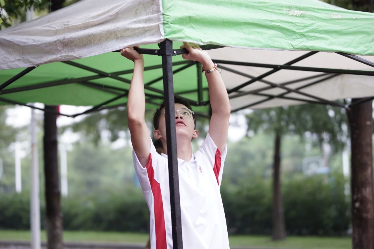 志愿者们穿梭于风雨交错间