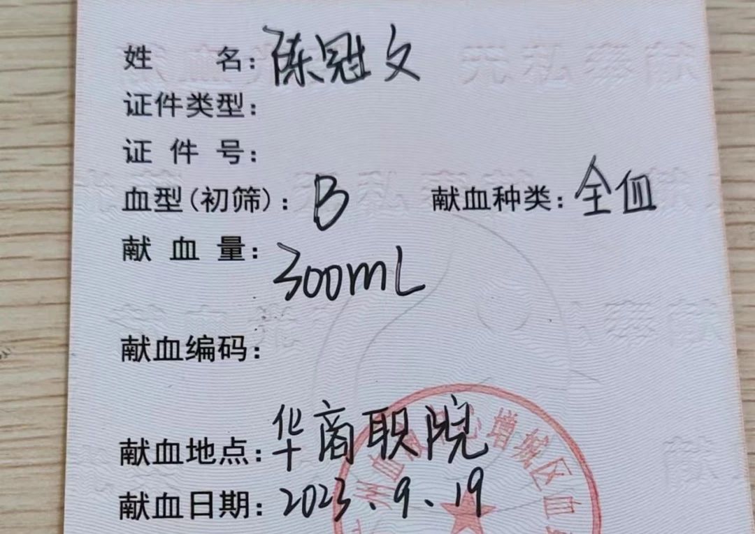 滴滴爱心,汇聚希望之光,涓涓热血,彰显生命至上。9月19日-20日,我校红十字会联合增城区红十字会、增城区血站分别在我校博学楼和创新楼开展了本学期第一次无偿献血暨造血干细胞捐献志愿者登记活动。在此次献血活动中,我院学子积极参与,纷纷捐献出自己的一份热血,自愿加入到无偿献血的队伍,伸出援助之手,为挽救生命而献出一份爱心!23工程造价1班张鹏
