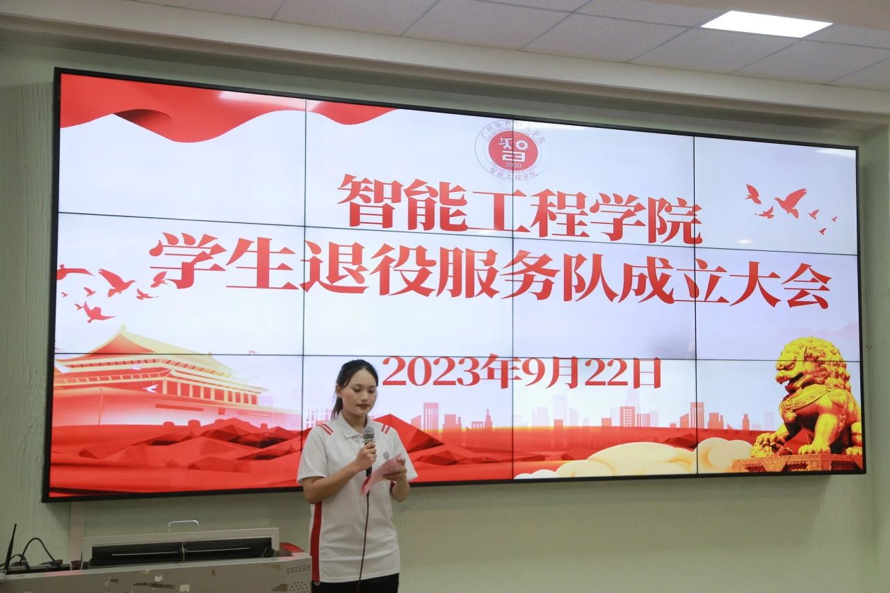 退伍不褪色,复学葆初心。为弘扬爱国主义精神,培养学生团队合作精神和社会责任感,共建一个学生退役服务队风采、交流学习经验的平台,进一步做好退役大学生的思想引领工作,智能工程学院于2023年9月22日12:10分在博学楼C101召开了学生退役服务队成立大会。
