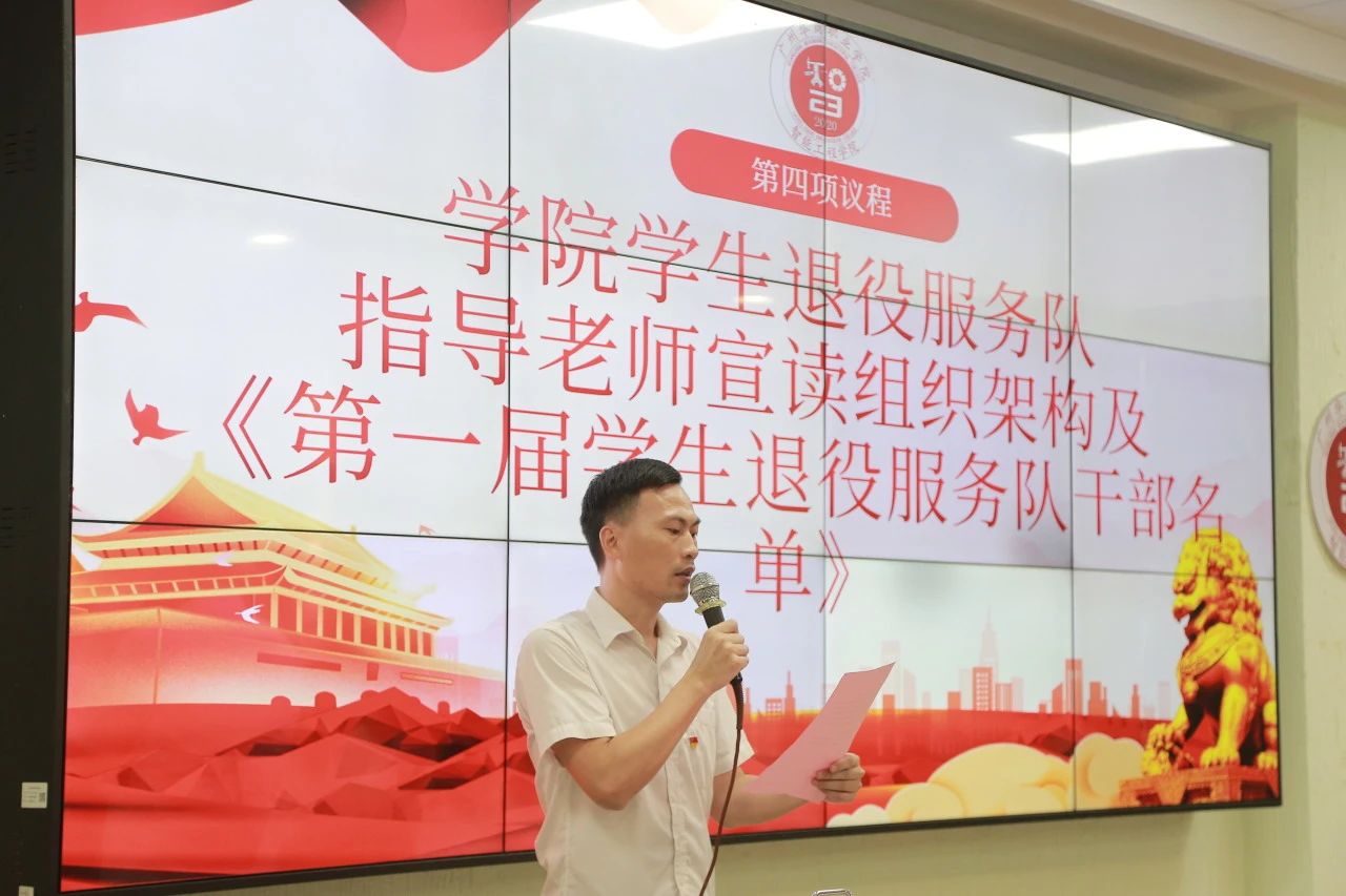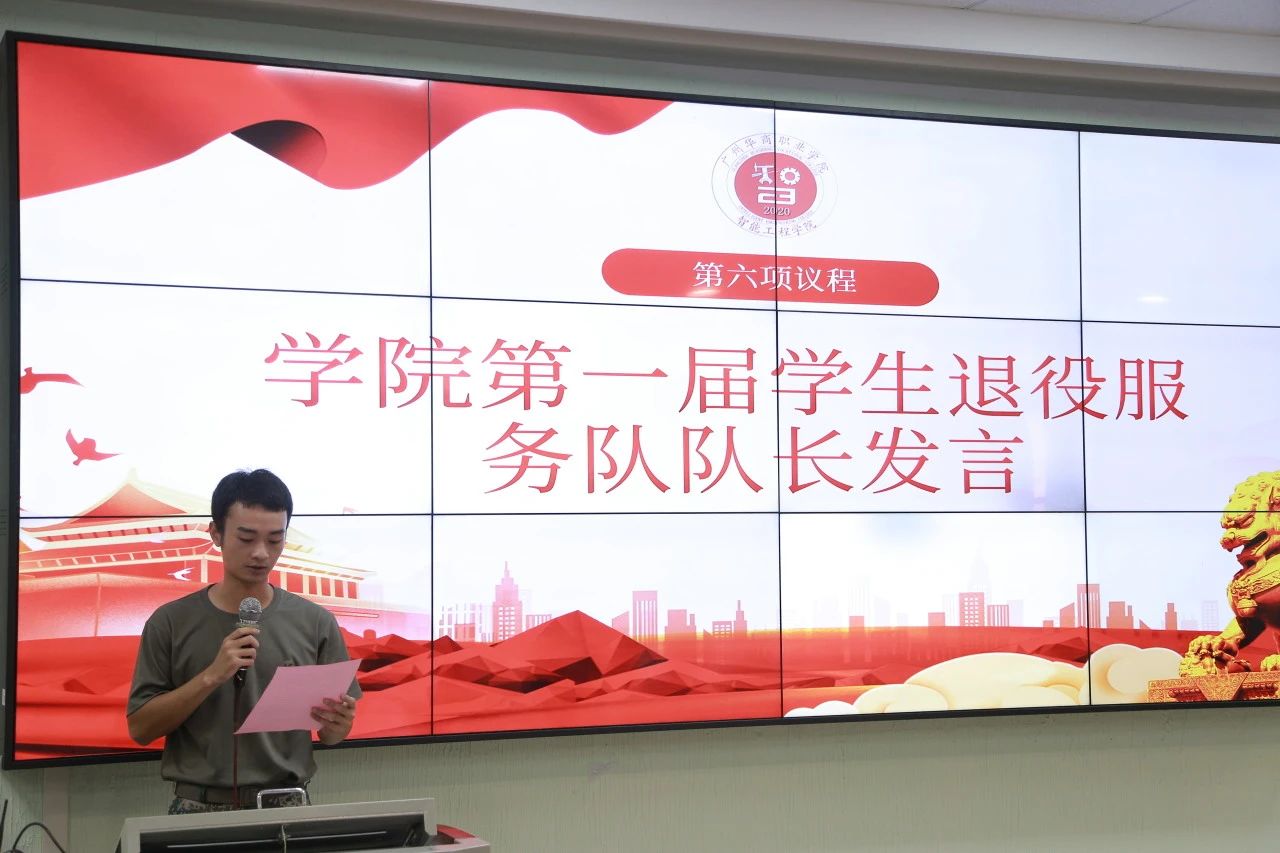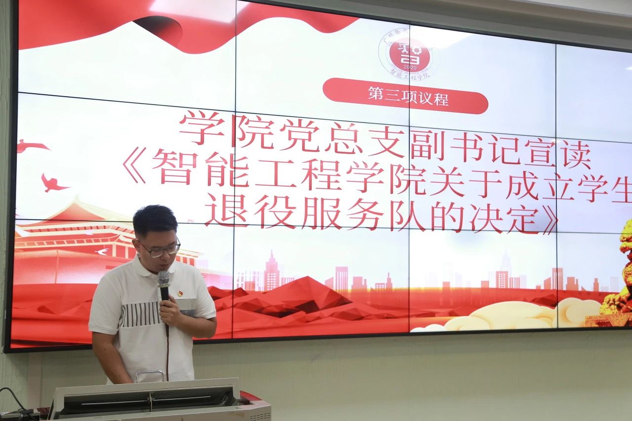 党总支部副书记姚柏洲宣读《智能工程学院关于成立学生退役服务队的决定》。