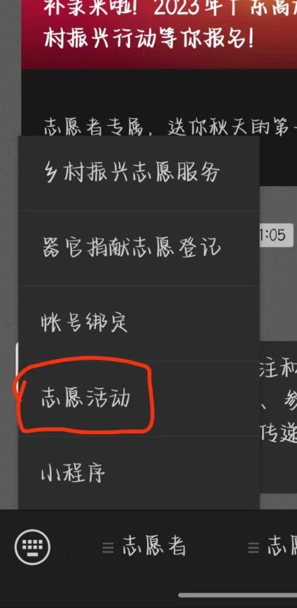 2、点击“志愿者活动”进入后;
