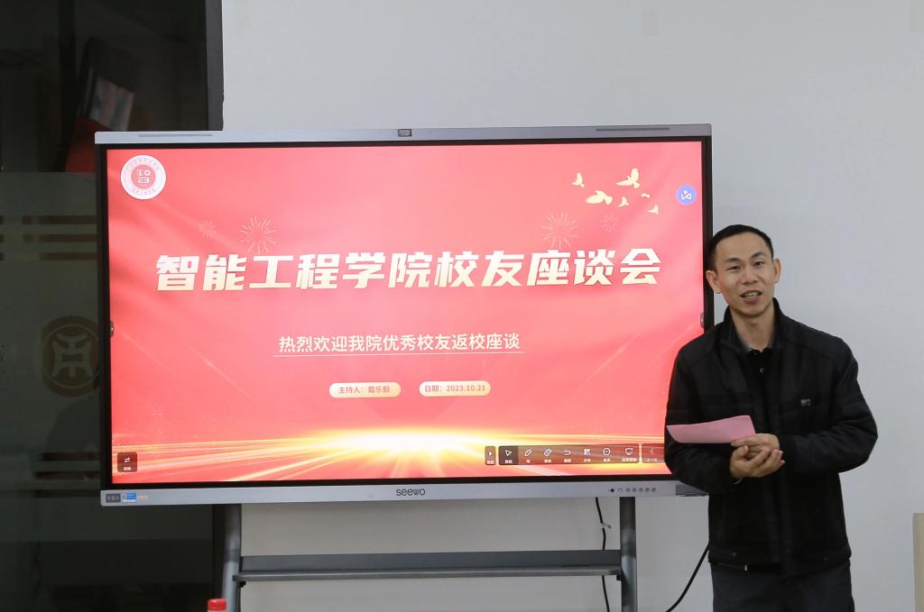 金秋十月银杏增秀,丹桂飘香棕榈依依。在这美好的日子里,为强化母校与校友的联系,更好地给同学们树立优秀的榜样与标杆,引导他们向优秀校友学习,10月21日13:30分,智能工程学院在创科楼A4-303教室召开了优秀校友交谈会。