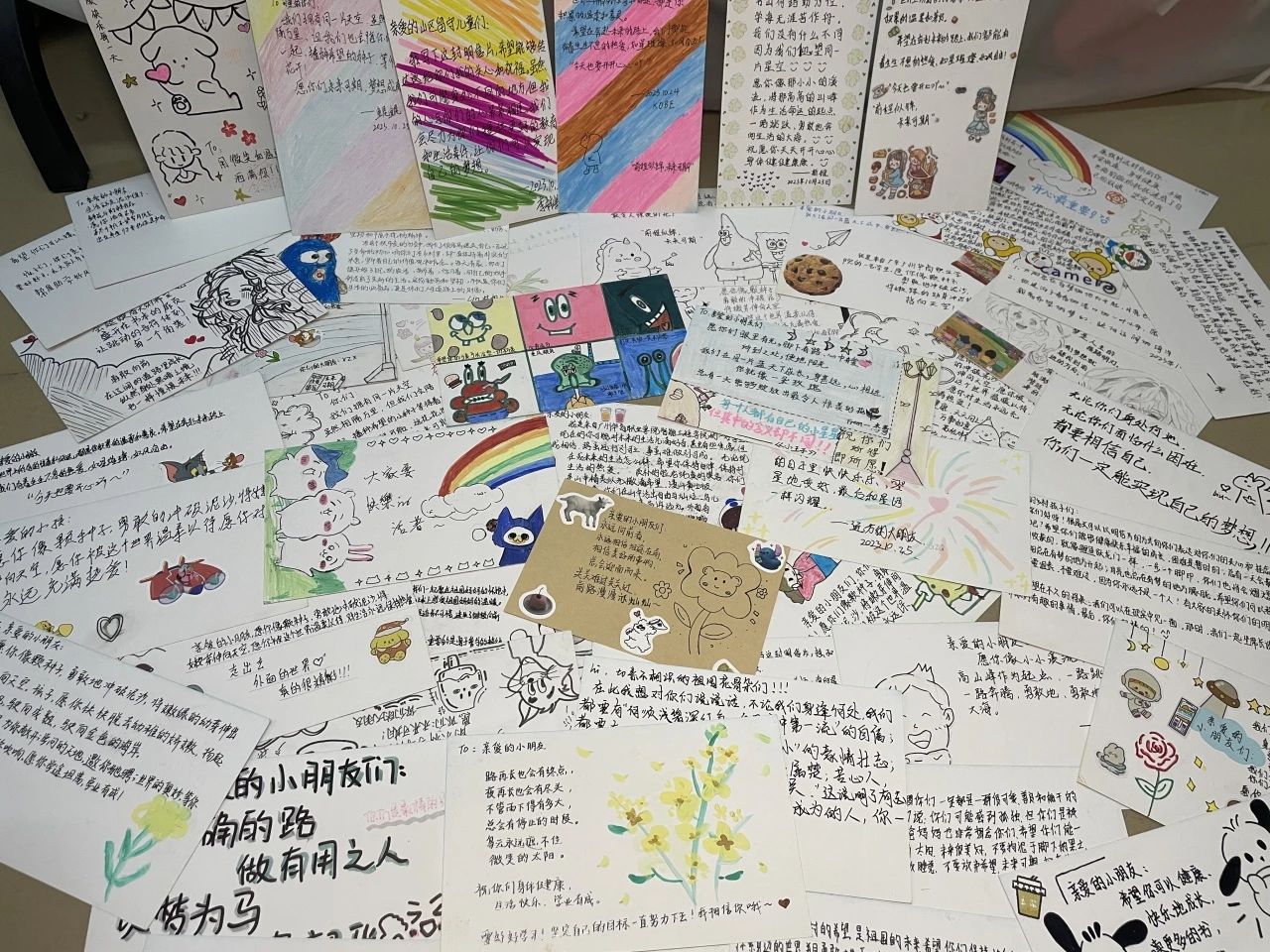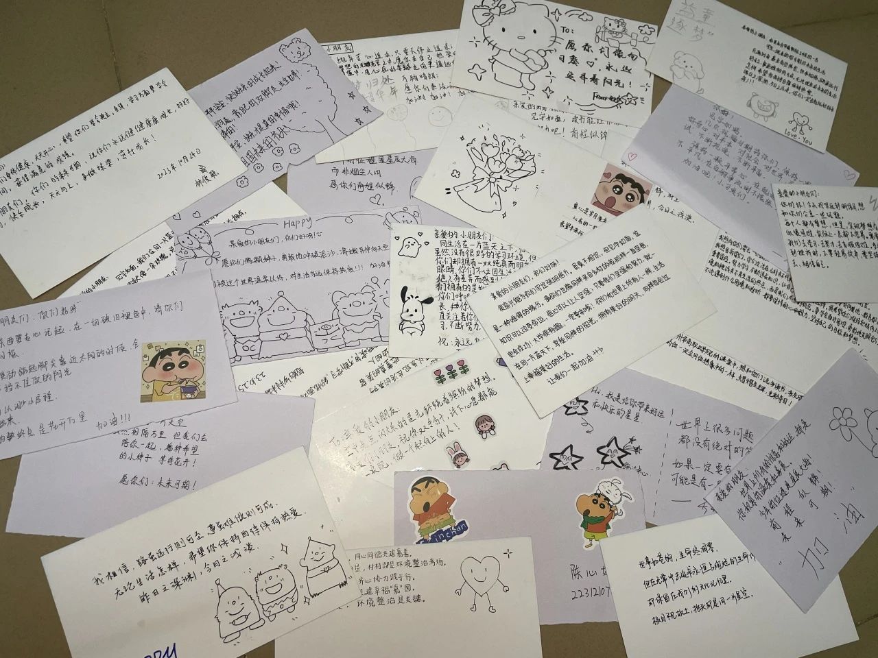 活动如火如荼地开展,同学们在明信片上写下字句,诉说着对孩子们的殷切期盼,一笔一画勾勒出对孩子们的美好祝愿。