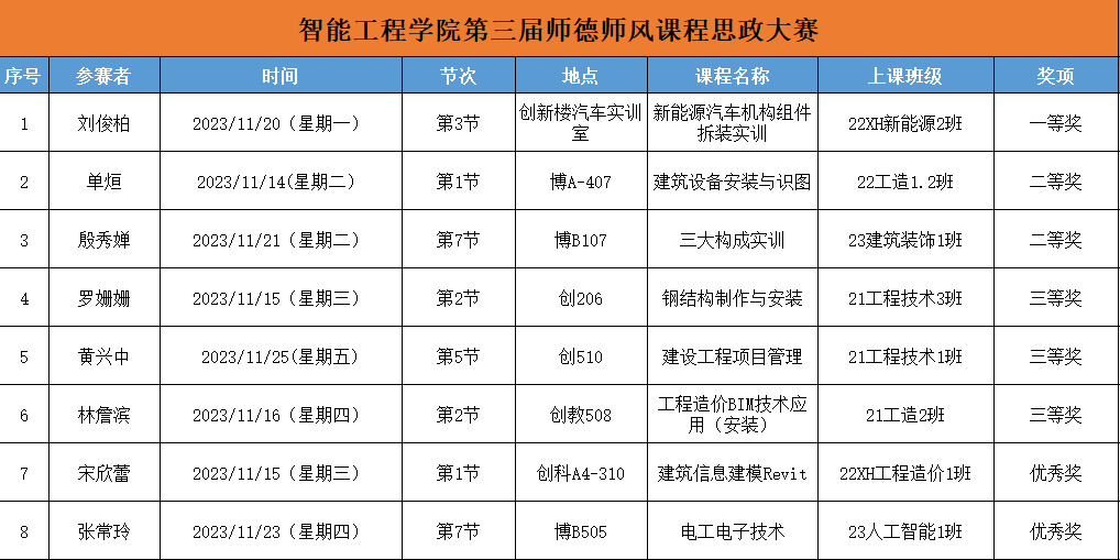 以构建全员、全程、全课程育人格局的形式将各类课程与思想政治理论课同向同行,形成协同效应,把“立德树人”作为教育的根本任务的一种综合教育理念,智能工程学院教师党支部积极响应国家号召,把培养什么人、怎样培养人以及为谁培养人作为人才培养的根本问题,于2023年11月14日至11月25日开展“师德师风课程思政”专题大赛。