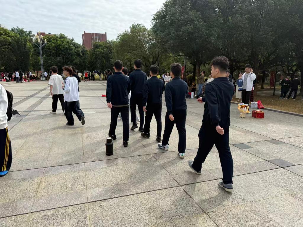 定点巡逻,秩序井然:四个巡逻组分别负责拍摄区、候场区、通道及周边等重点区域。他们耐心引导队伍,疏导人流,及时提醒同学们注意安全,确保了各区域秩序井然,为拍摄工作创造了最佳环境。