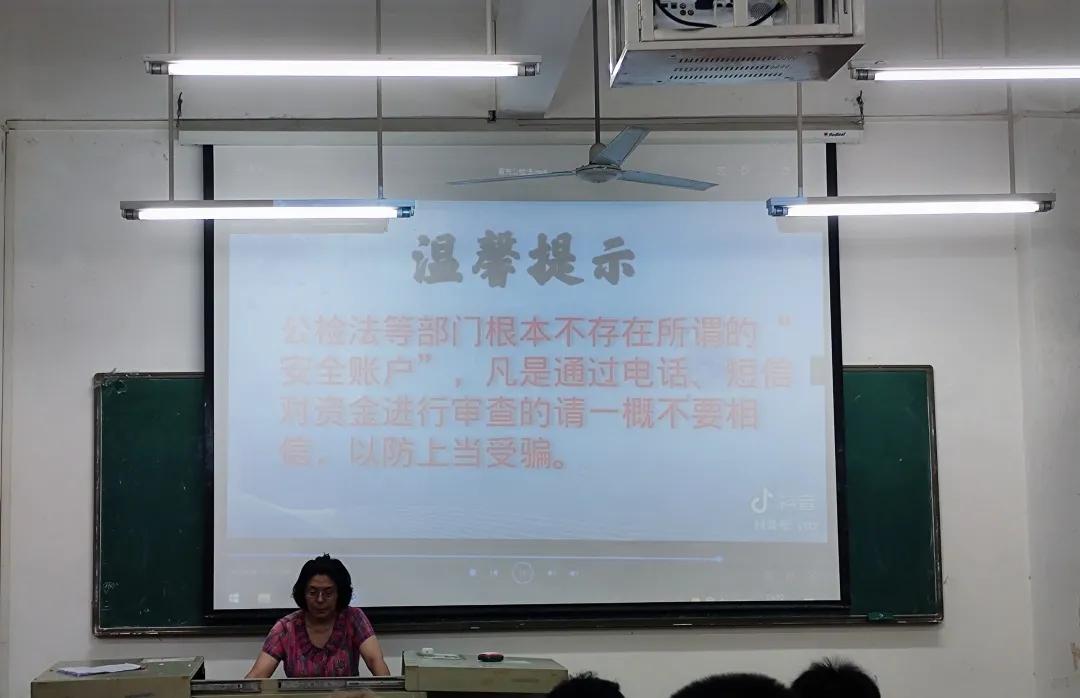 此次班会不仅再次强化同学们反诈骗的意识,还对同学们进行一系列防诈骗的指导。第一、遇到诈骗情况第一时间告知辅导员或班主任。第二、引导同学们把更多精力放到学习和班级活动上,少玩游戏,不点陌生链接、不接陌生人电话等。第三、以案示警,通过真实案例宣传增强学生在生活中灵活应对诈骗现象的防范意识,提高学生各方面自我预防、自我保护、自我应对的能力。