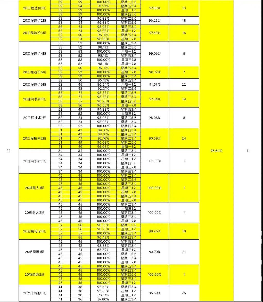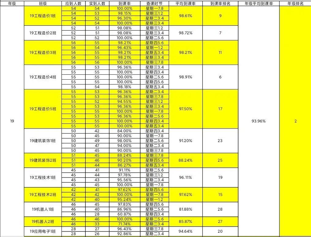 智能工程学院团总支办公室纪检部和学生会生活部的干部们,对我院进行第十七周的学生到课率统计,现公布第十七周的查课汇总情况。