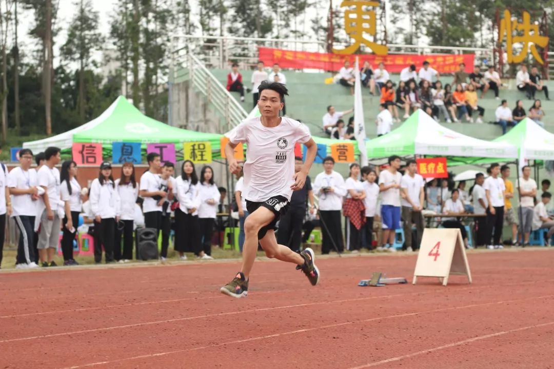 随着裁判员的手起枪响,汽车学院的运动健儿们全力调动全身的机能,踏着起跑器,迸发出去,冲向终点!200米,有一个人生的起点,有一个人生的弯道,有一个人生的冲刺,有一个辉煌的胜利!400米赛跑,路程不算长,人生贵在拼一场。4x100接力赛跑,一根接力棒,传递的是勇气和力量,连接的是团结和友爱,演绎的是奋斗和拼搏!1500米,面对遥远的路途,你坚持不懈,咬紧牙关一步一步脚踏实地的跑向终点!立定跳远,运动员们那身轻如燕的身姿,起跳落地,完美的抛物线!三级跳远,运动员们助跑起跳,踏着青云,绎写了如同武侠小说里的轻功!