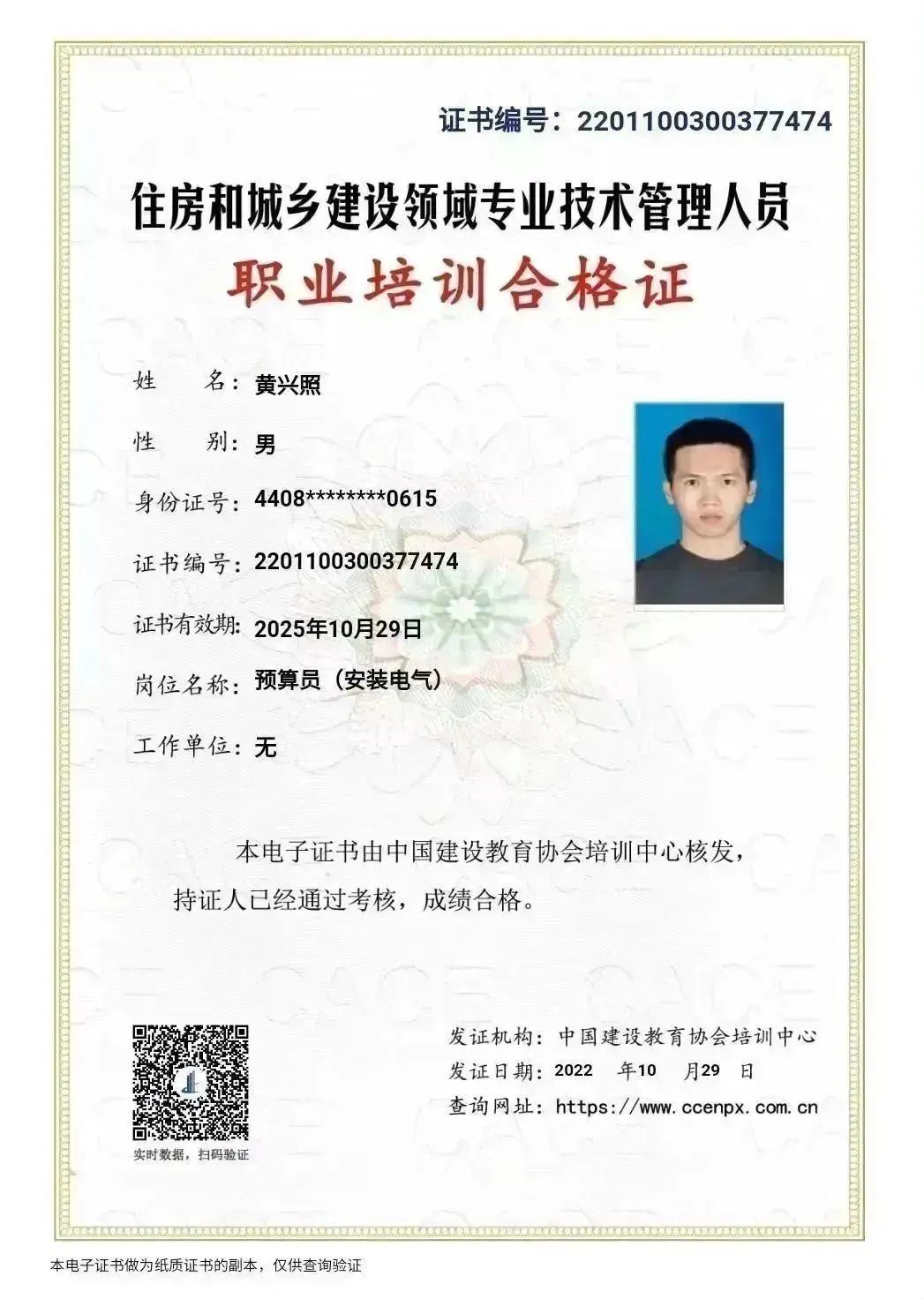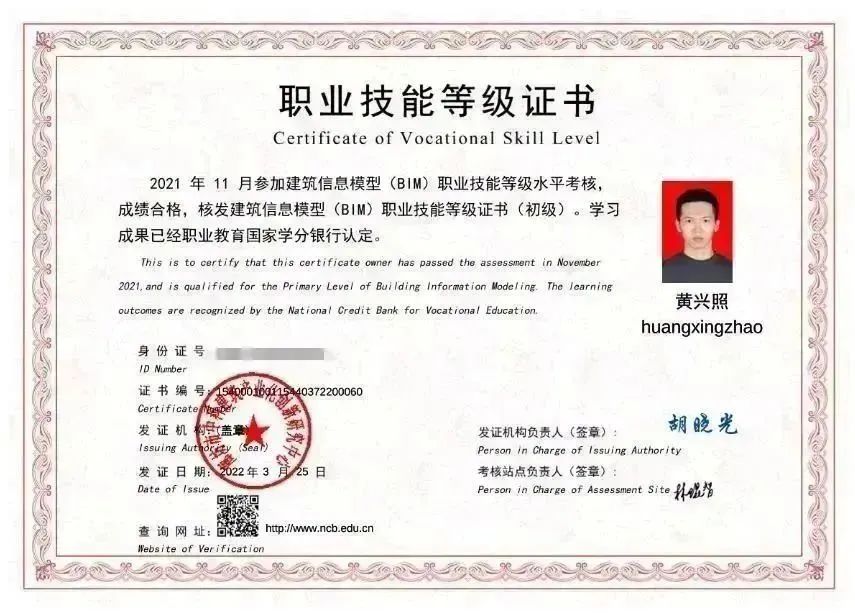 此外他还积极参加专业技能大赛和技能考证,目前已获得建筑八大员证书-预算员(土建与装饰)、预算员(安装与电气)、BIM 1+X初级证书,AutoCAD设计与应用证书,工程造价与分析证书。