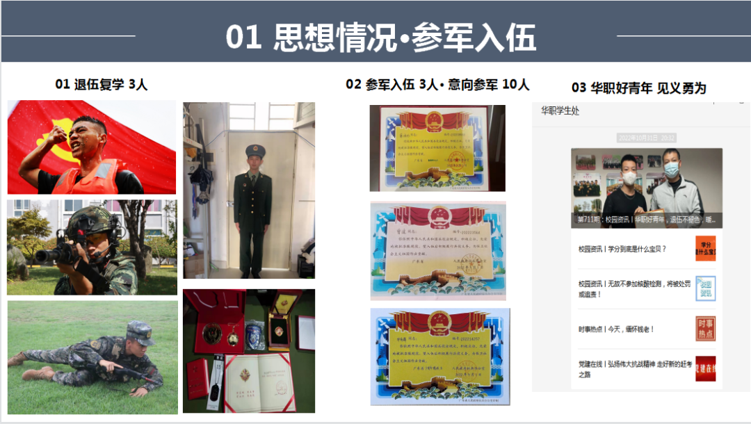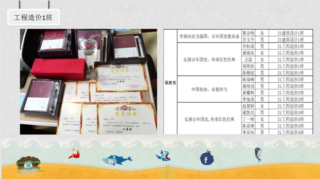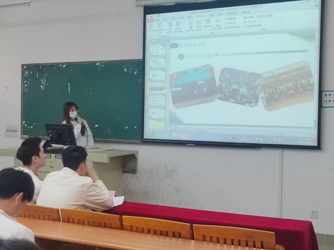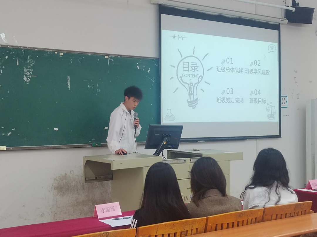 经前期申报、推荐审核,共有11个候选班级参与2022-2023学年秋季学期先进班集体现场答辩。各班级按照此前抽签顺序进行班级风貌展示,在规定的5分钟之内围绕本班班级党团建设、思想建设、学风建设、志愿服务、班级活动等方面内容,结合PPT的展示,生动地向评委们展示了班级建设情况。