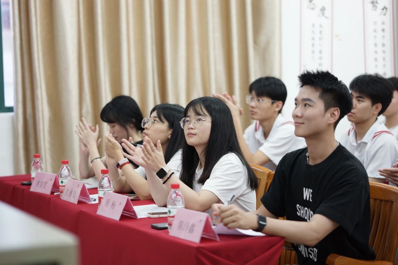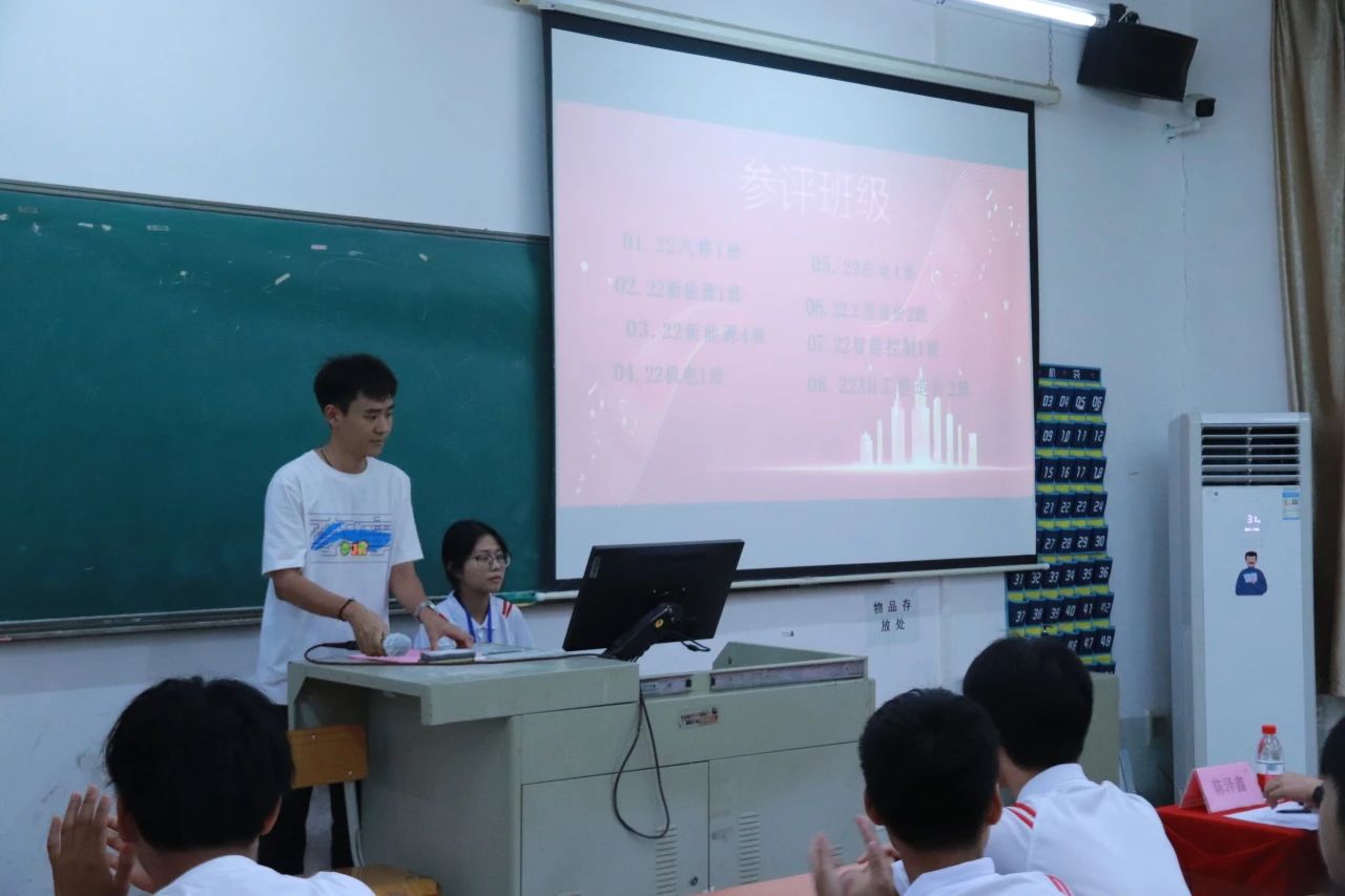 为进一步加强学风建设,营造良好的学习环境,充分发挥先进班集体的示范引领作用,激发学生的积极性和主动性,激励广大学生勤奋学习,9月20日,我院在博学楼B502开展先进班集体评选公开答辩会。学院团委副书记陈泽鑫老师、辅导员代表周扬老师、黄琳璇老师、黄嘉雯老师出席并担任答辩评委,候选班级学生代表以及全体23级新生班长等共同观摩学习。