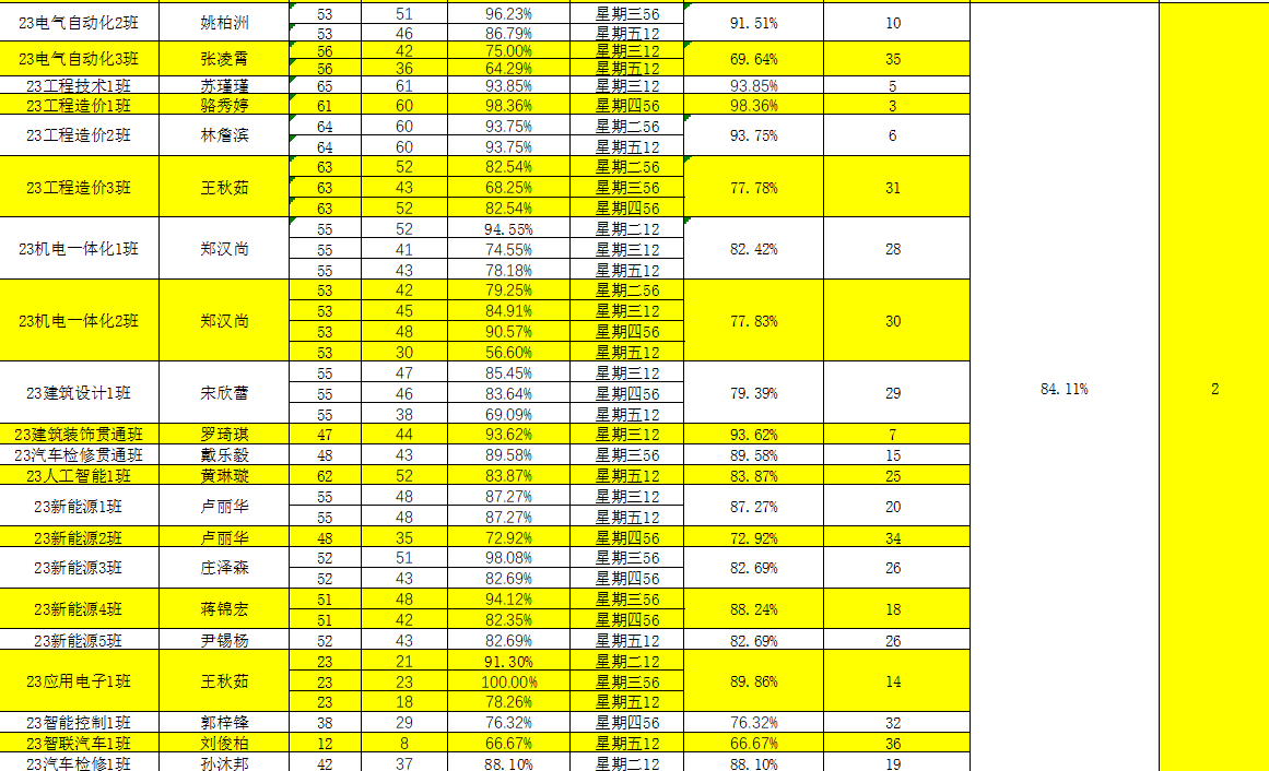现将第十六周的查课数据汇总结果给予公布。
