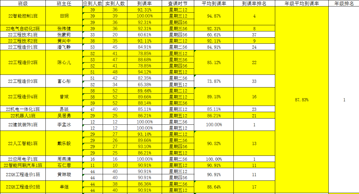 智能工程学院院团委的干事们对我院第十六周的学生课堂情况和学生到课率进行了统计。