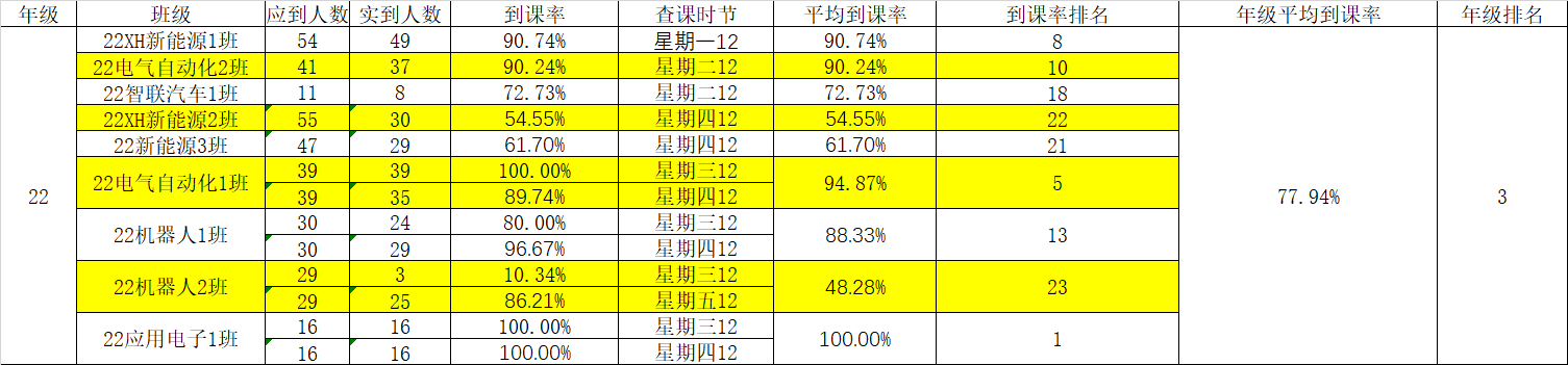 智能制造与汽车学院院团委的干事们对我院第三周的学生课堂情况和学生到课率进行了统计。