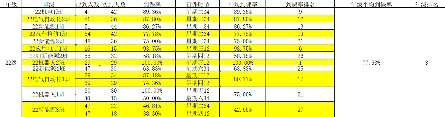 智能制造与汽车学院院团委的干事们对我院第七周的学生课堂情况和学生到课率进行了统计。