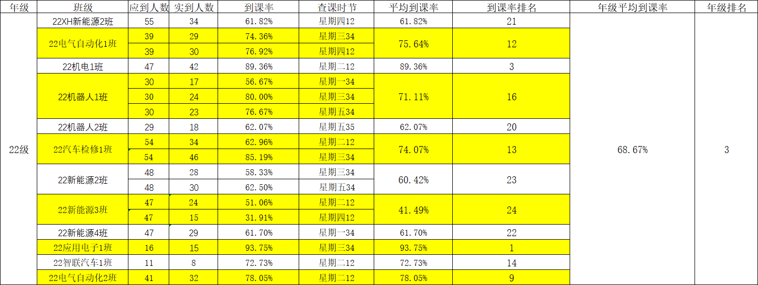 智能制造与汽车学院院团委的干事们对我院第八周的学生课堂情况和学生到课率进行了统计。