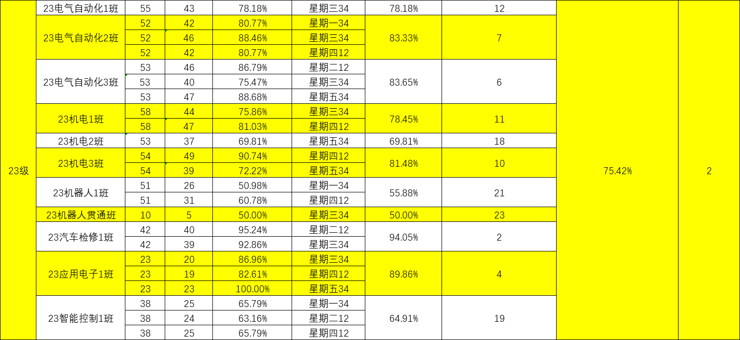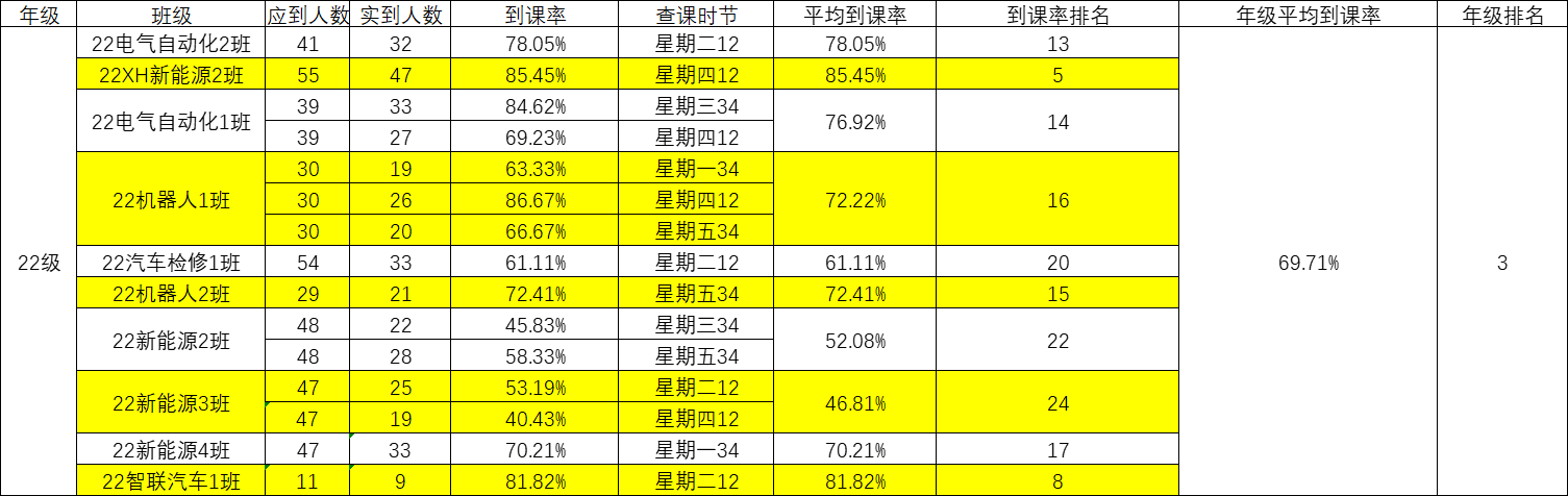智能制造与汽车学院院团委的工作人员们对我院第十周的学生课堂情况和学生到课率进行了统计。