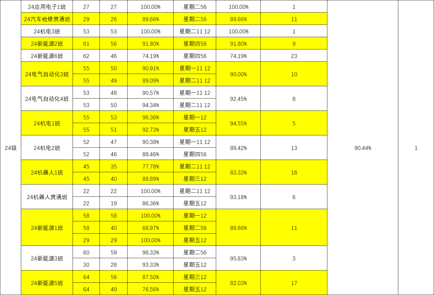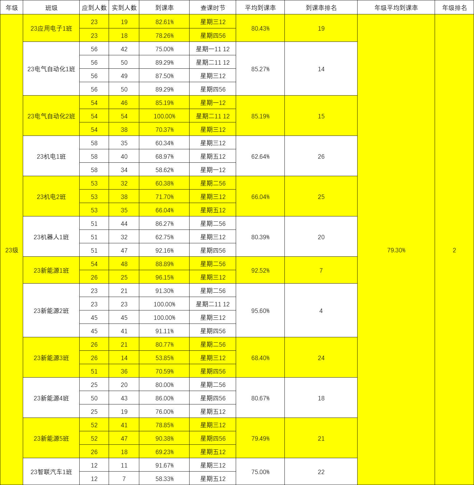 智能制造与汽车学院院团委的工作人员们对我院第四周的学生课堂情况和学生到课率进行了统计。