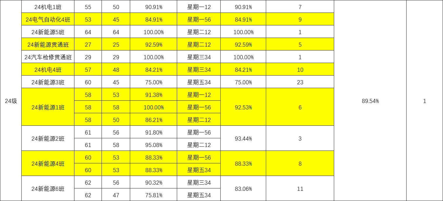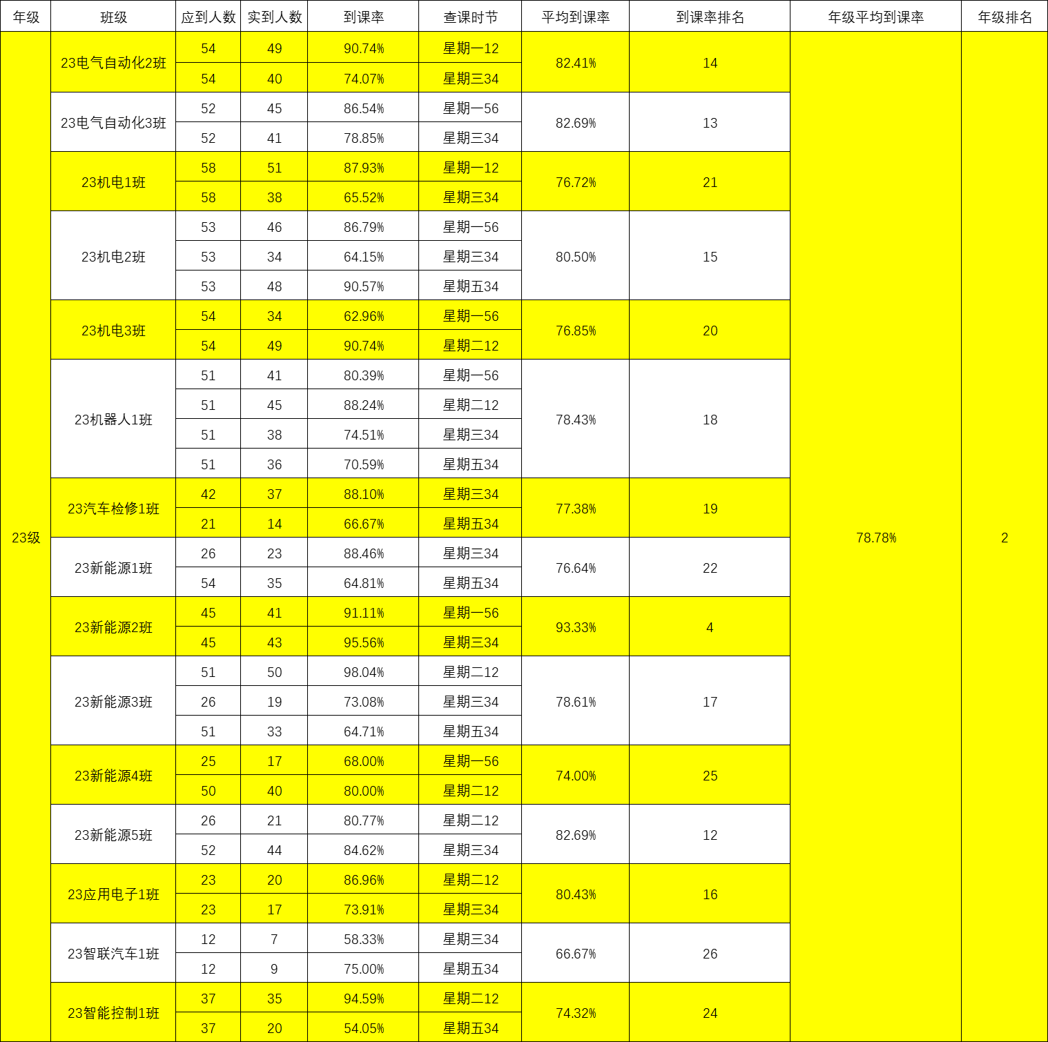 智能制造与汽车学院院团委的工作人员们对我院第六周的学生课堂情况和学生到课率进行了统计。