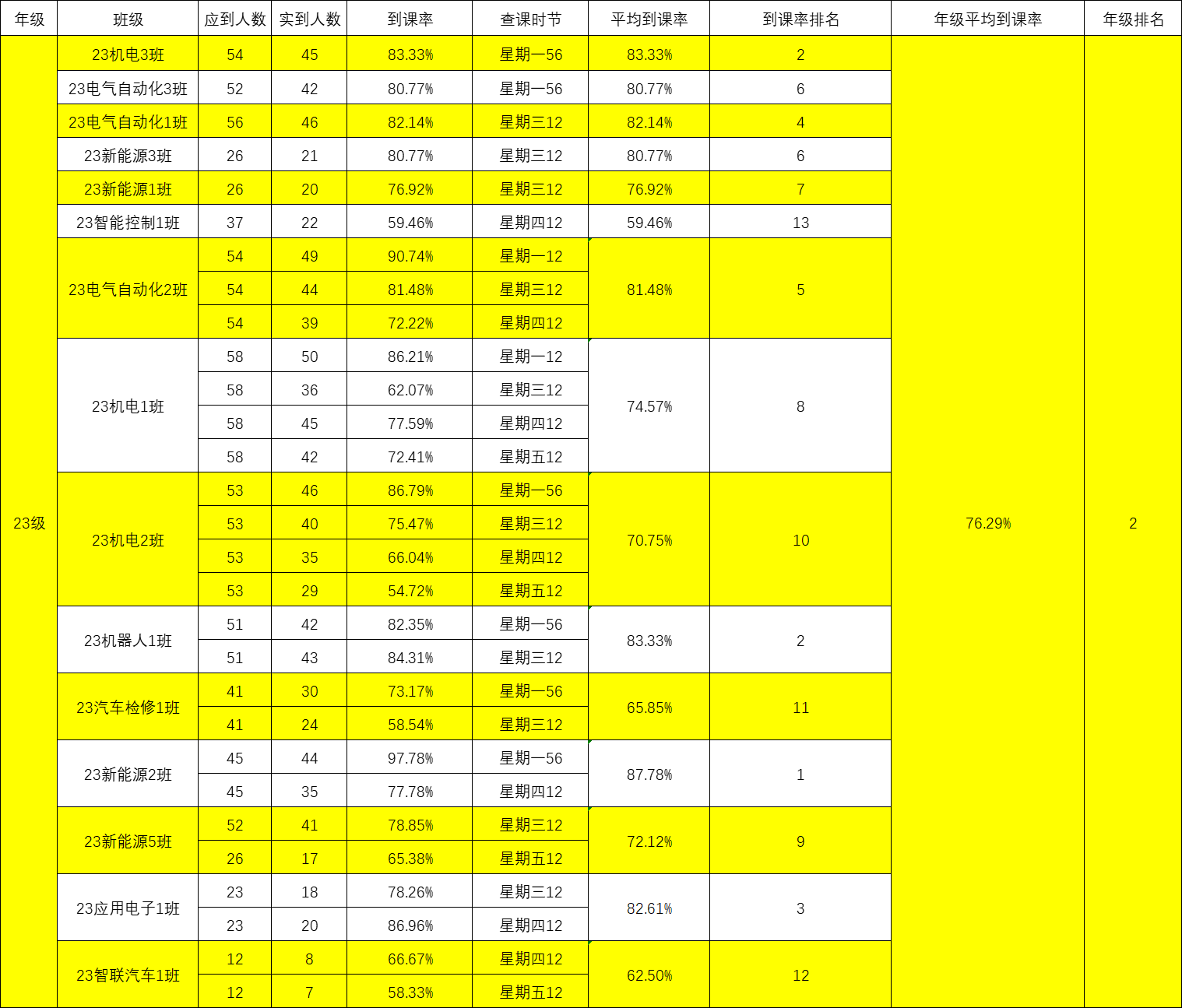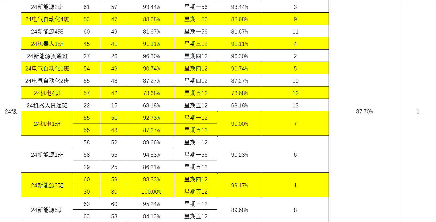 智能制造与汽车学院院团委的工作人员们对我院第八周的学生课堂情况和学生到课率进行了统计。