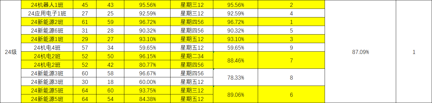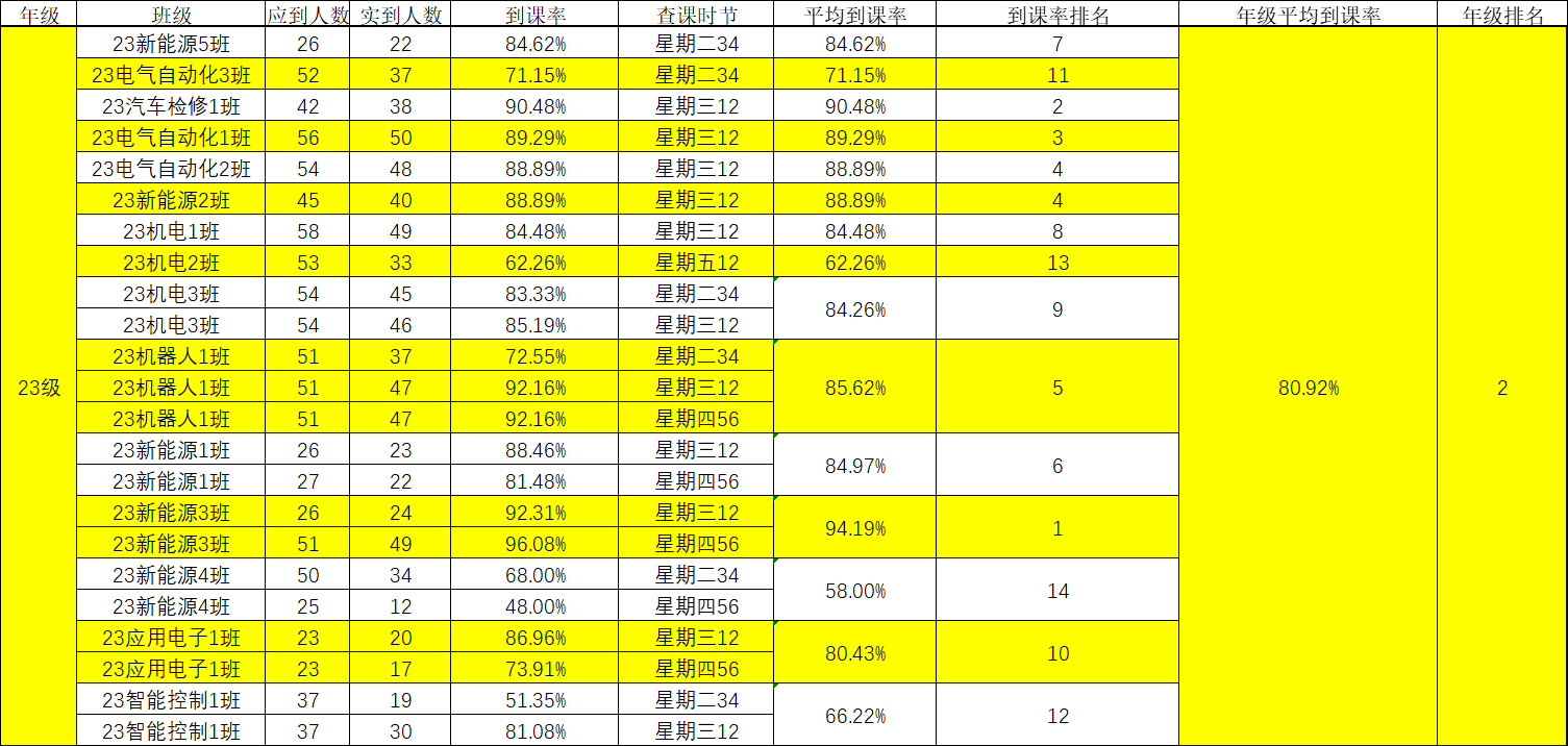 智能制造与汽车学院院团委的工作人员们对我院第十五周的学生课堂情况和学生到课率进行了统计。