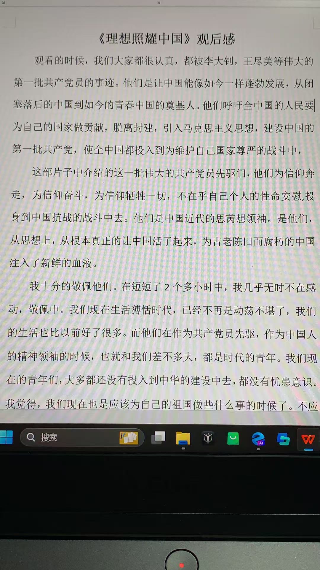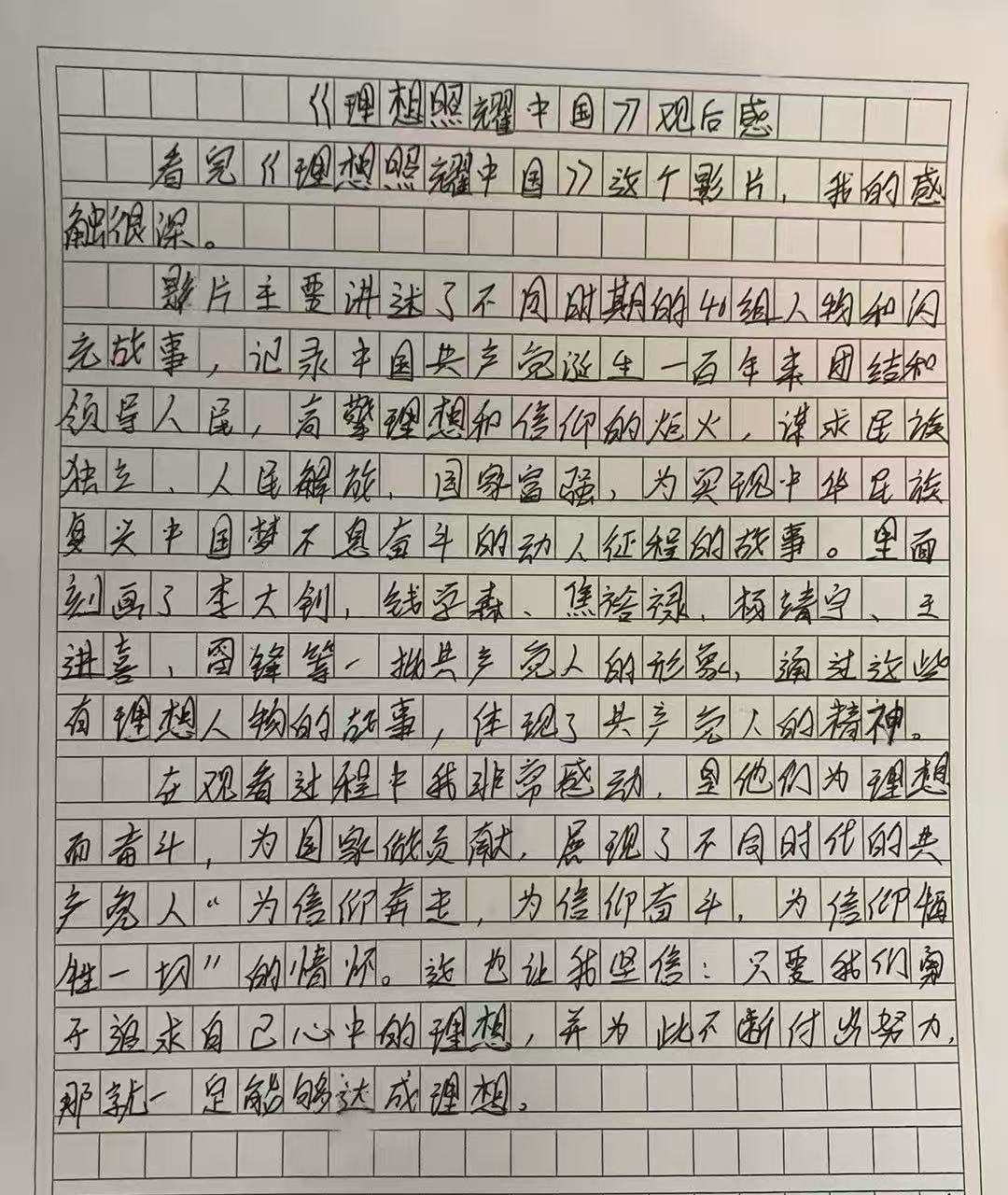 观影结束后,回到宿舍的同学们并没有停止思考。纷纷拿起笔,将自己在观影过程中的所思所感记录下来。有的同学写到:“先辈们用热血和生命为我们铺就了今天的幸福之路,我们应当珍惜这来之不易的和平,努力学习,为国家的繁荣富强贡献自己的力量。”还有同学感慨:“理想是人生的灯塔,指引我们前行的方向。”一篇篇感悟心得,是同学们内心最真实的写照,也是他们对理想信念的深刻思考。这些文字,不仅见证了同学们的成长与进步,也为班级建设注入了强大的精神动力。
