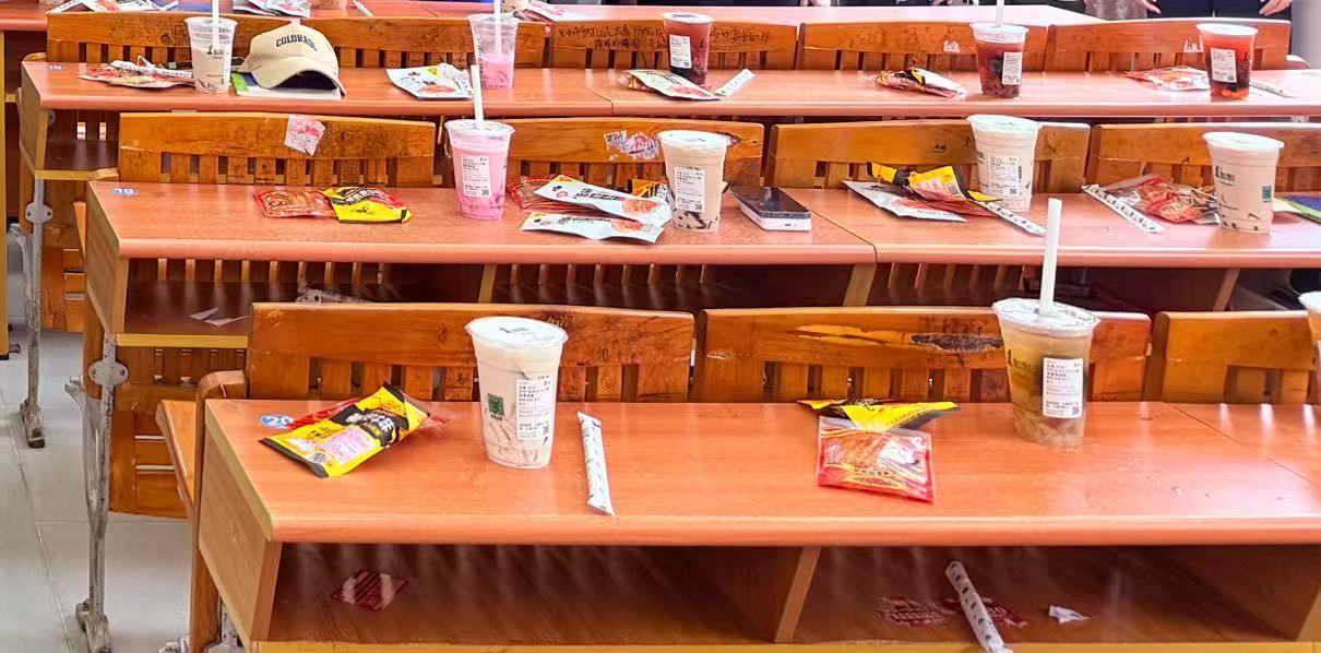 为了让同学们能全身心沉浸于红色文化的熏陶中,班委们进行了细致的前期准备。提前选定观影时间和场地,调试好播放设备,确保每一个细节都万无一失。考虑到观影的体验感,还准备了奶茶和各式各样的零食。活动当天,摆放整齐的奶茶和零食,就像在默默欢迎着同学们的到来。