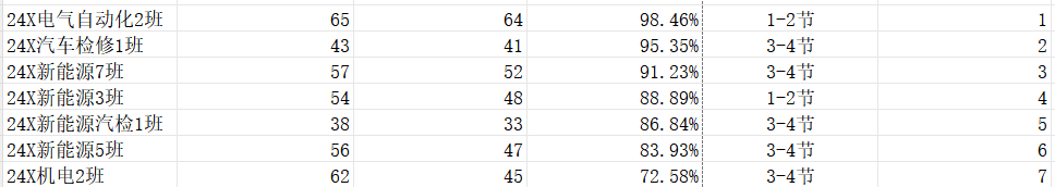 智能制造与汽车技术学院团委办公室工作人员对智能制造与汽车技术学院(江门校区)第一周的学生课堂情况和学生到课率进行了统计。