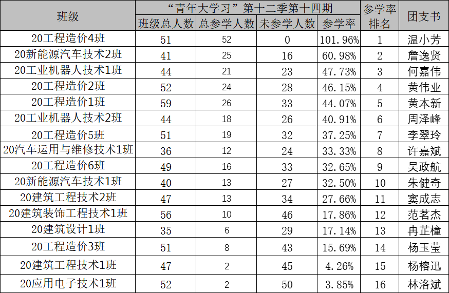 上一条:青年大学习第十三季四期各年级参学数据及排名公示
