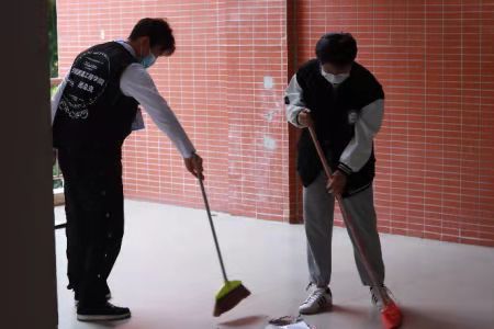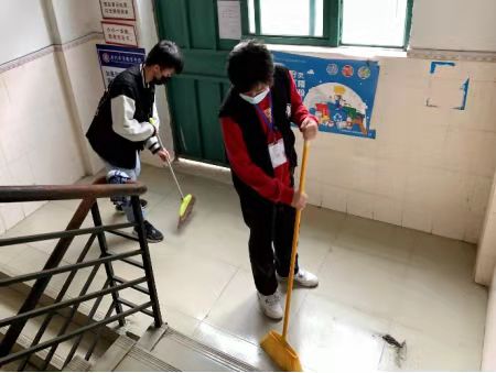 在进行简单的任务分配后,由活动负责人组织志愿者对宿舍楼进行了分工清理,志愿者们积极参与打扫,清理楼层垃圾。在志愿者们的共同努力下,宿舍楼内整体面貌焕然一新。