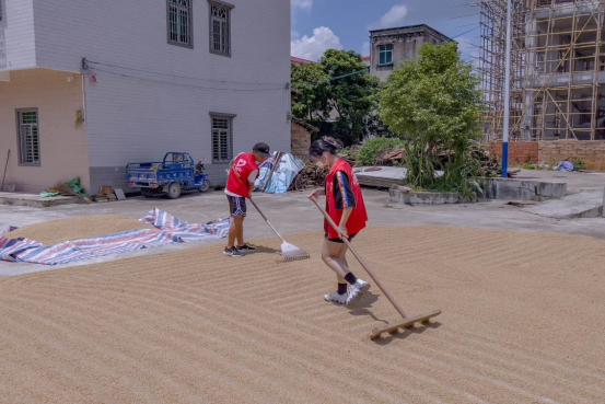 除此之外,充满朝气的成员们主动帮当地农户收稻谷,全体队员积极参与晾晒、搬运、储藏等农活劳作,他们的行为赢得村民一致称赞。志愿者们认真的工作态度和辛勤的劳动赢得了村民的赞扬与肯定,同时通过解决群众身边事、烦心事,推进“我为群众办实事”常态化、长效化。