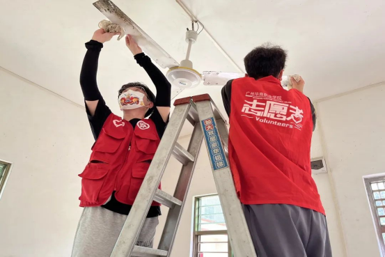 活动中,队员们分为两队分别前往指定区域开展志愿服务活动,借助扫帚、抹布、清洁刀、螺丝刀等工具分别负责捡拾生活垃圾、清理“牛皮癣”和家电清洗维修。