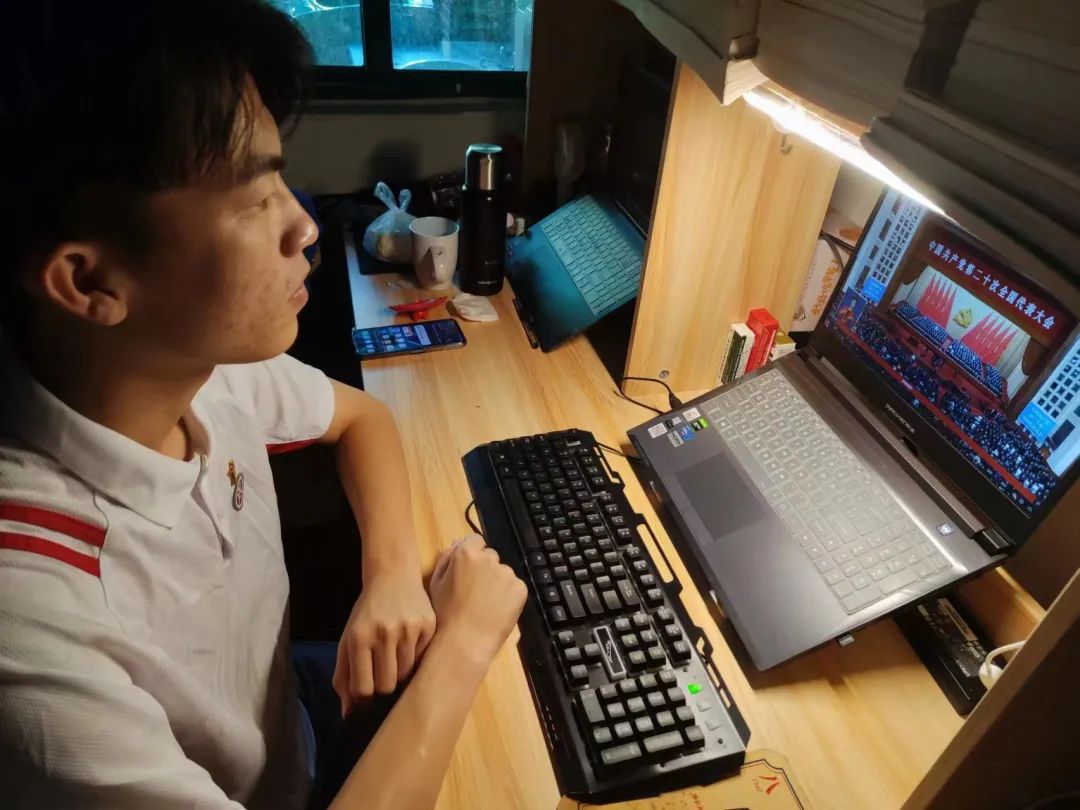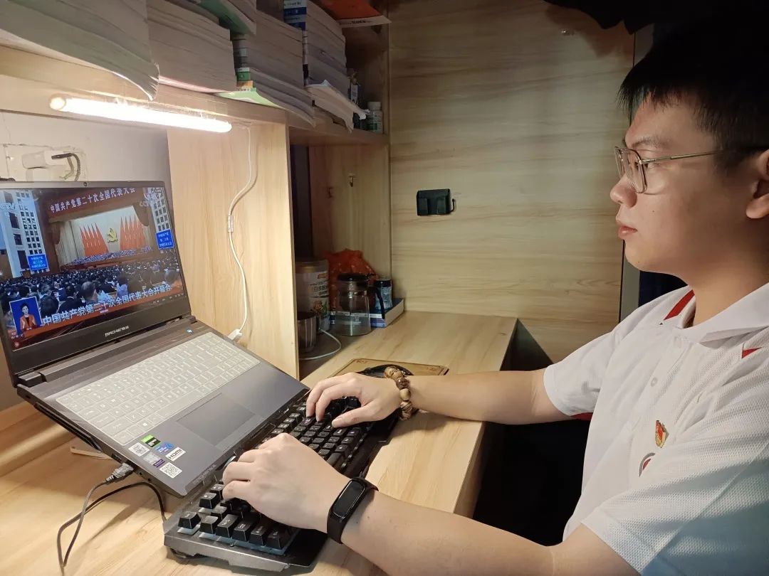 团支部成员翁棉旭:“在收看开幕会后,我有很深的感触。总书记在报告里总结了过去的成绩,在之前五年中,我们完成了全面建成小康社会的伟大成就,实现了第一个百年奋斗目标。但在国际形势错综复杂、新冠肺炎疫情肆虐的今天,我们在未来五年里还将面对更多的挑战,我们要继续高举中国特色社会主义伟大旗帜,走中国特色社会主义道路,相信我们必将克服重重困难,向实现社会主义现代化的目标迈进。”