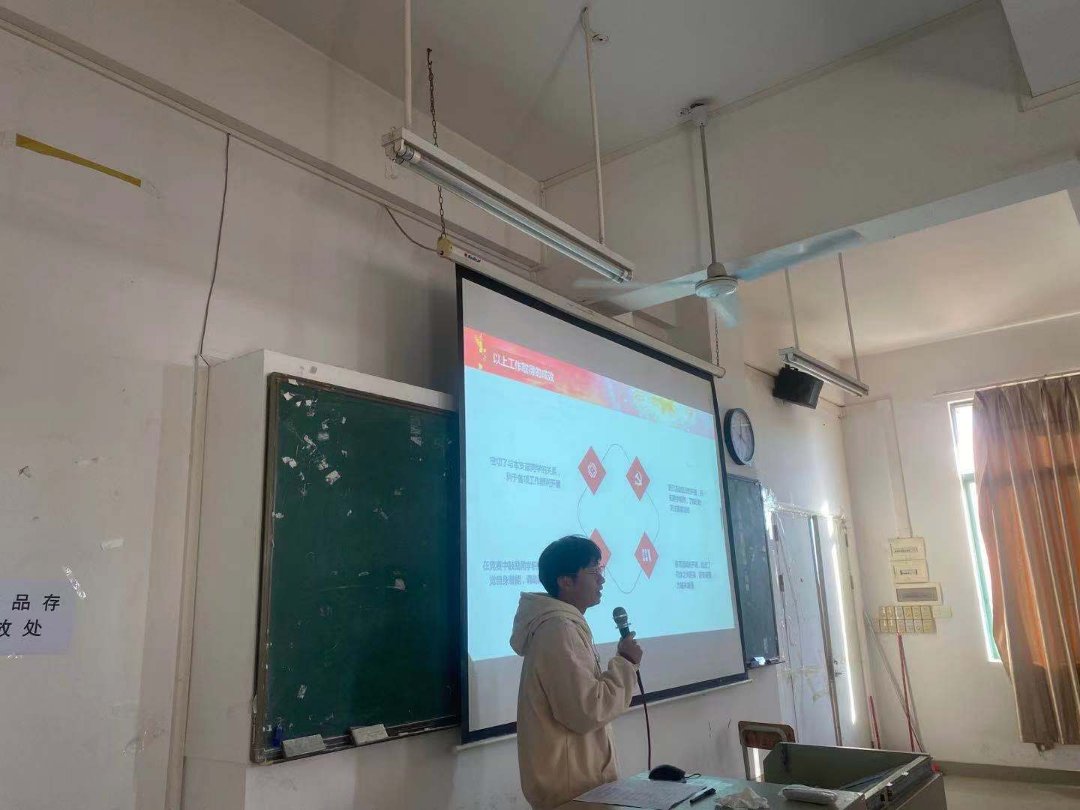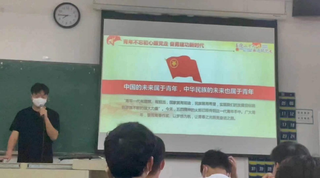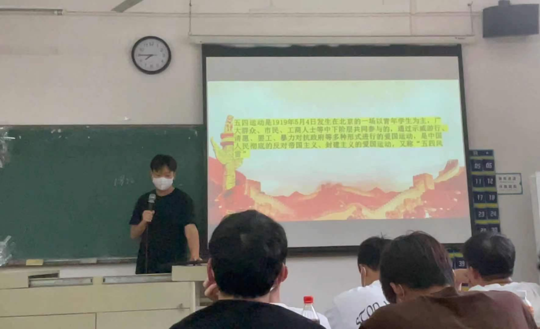 团支书林宏斌首先讲解了学习党史的重要性。加强党史知识的学习,是新时期党的建设的需要:是适应时代发展的现实需要:也是建设中国特色社会主义现代化建设事业的需要,其次,通过PPT和视频和答题环节让同学们了解建党以来的重要时期和阶段。