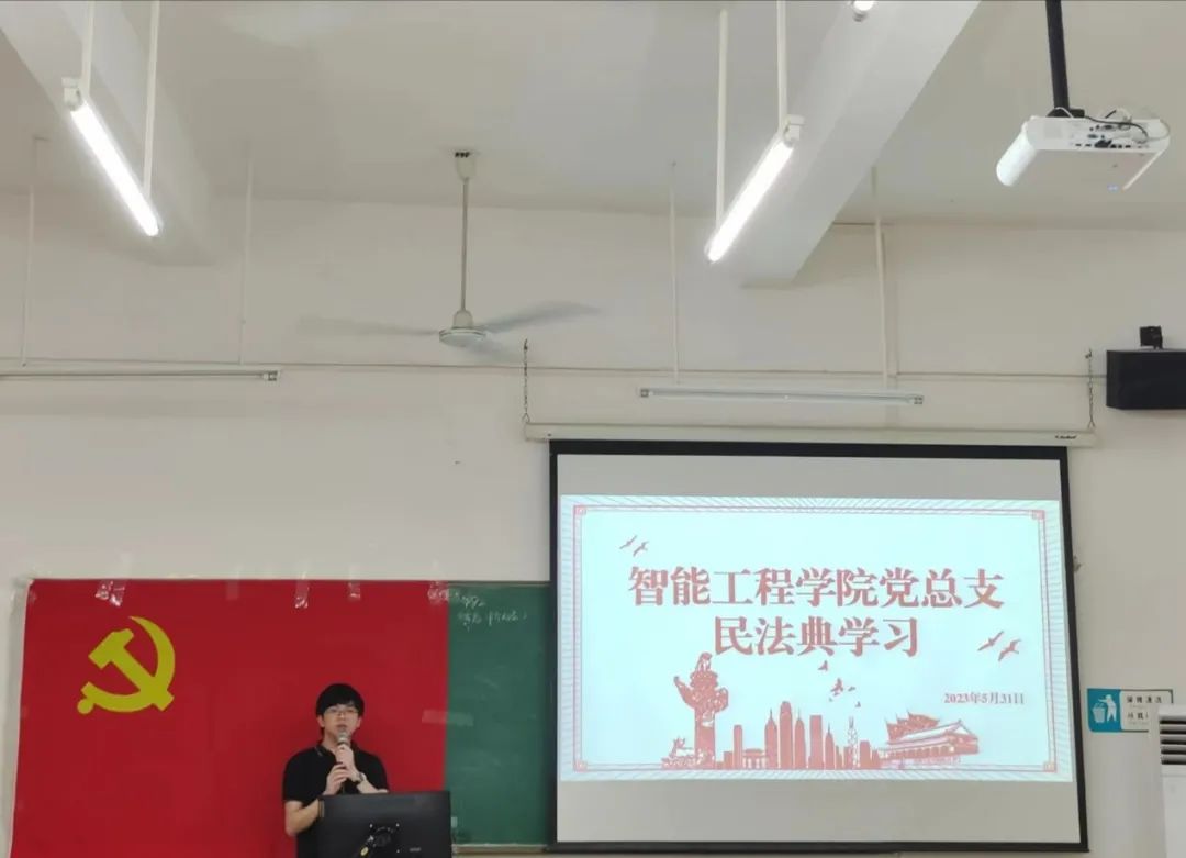 为广泛开展民法典学习宣传,让民法典走到群众身边、走进群众心里。5月31日中午,智能工程学院党总支在博C507室开展民法典学习会,学生第二党支部组织委员郭梓锋主持会议,全体师生党员参加此次会议。