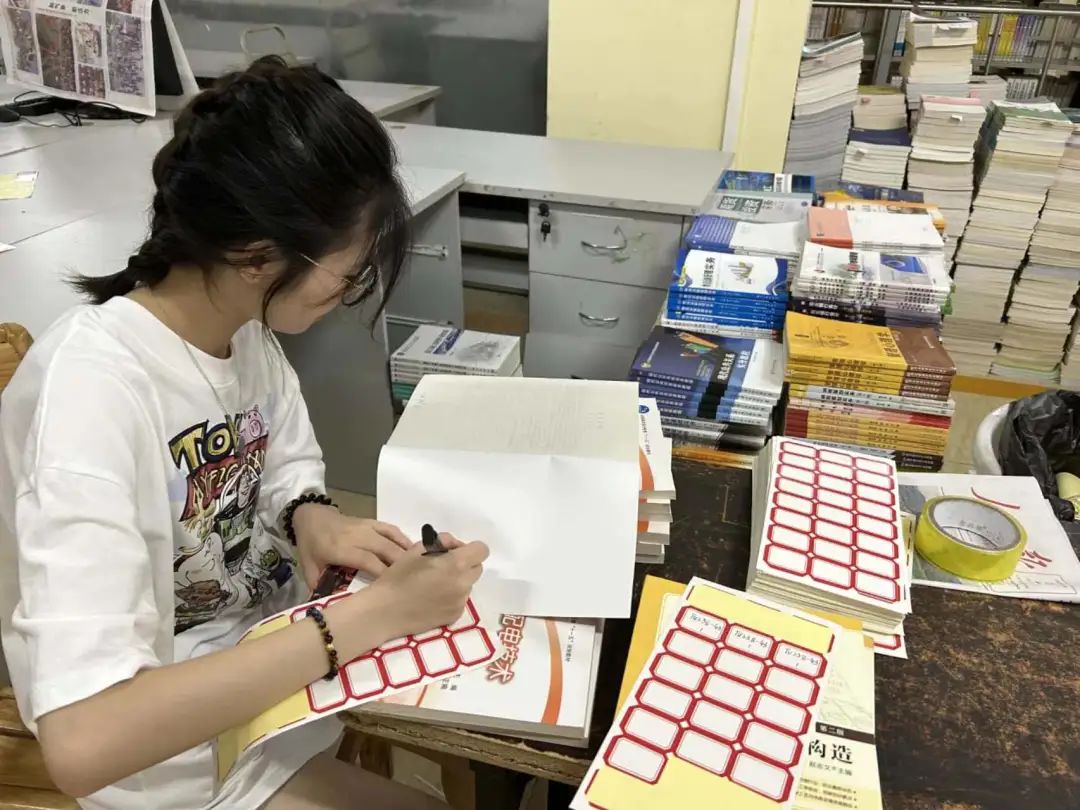 活动过程中,志愿者们分为四组对书籍进行整理以及贴标签,为同学们借鉴书籍提供便利。志愿者们态度积极、分工明确、配合默契、积极认真的为图书馆奉献着自己的力量,以饱满的精神状态在各自负责区域内忙碌。