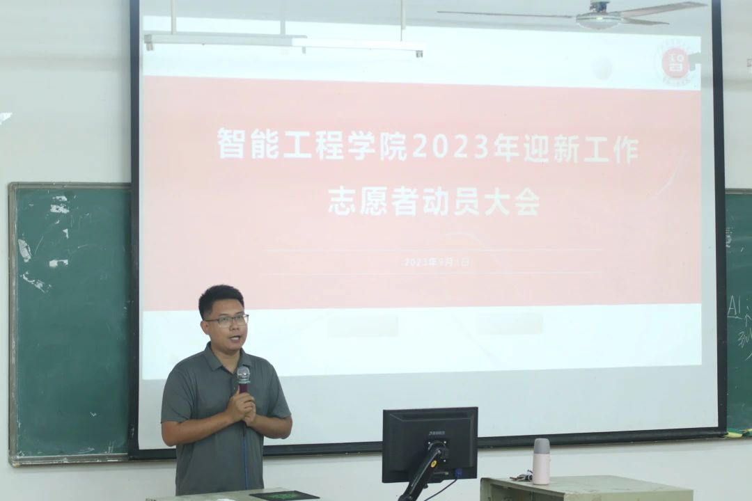 姚柏洲副书记在讲话中首先肯定了志愿者们参加迎新工作的积极态度,并对积极参加迎新工作的志愿者们表达感谢。同时,他也对志愿者们提出了三点期望:第一,希望各位志愿者能够保持自己的工作热情,克服困难,不怕苦不怕累,严谨、认真、高效地对待此次迎新工作,继承我院历届迎新的优良作风,充分地展现我院迎新志愿者热情、积极、向上的形象;第二,期待志愿者们能够出色地完成本次迎新工作,让新同学对智能工程学院志愿精神留下深刻的印象,为智能工程学院志愿者队伍吸纳新生力量打基础;第三,期盼志愿者们能够在此次迎新工作中收获成长和经验,以更加饱满的工作热情投入到新学期的志愿工作之中。