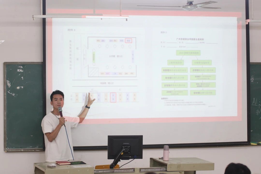会议伊始,陈泽鑫老师对各个站点的志愿者迎新工作做出相关安排,并指出学生干部需在迎新过程中端正态度,以饱满的热情和高度的责任感去迎接新生。他要求,全体学生干部要牢固树立服务意识,要热情周到、优质高效、服务到位、安全有序,全力保障迎新工作的顺利开展。