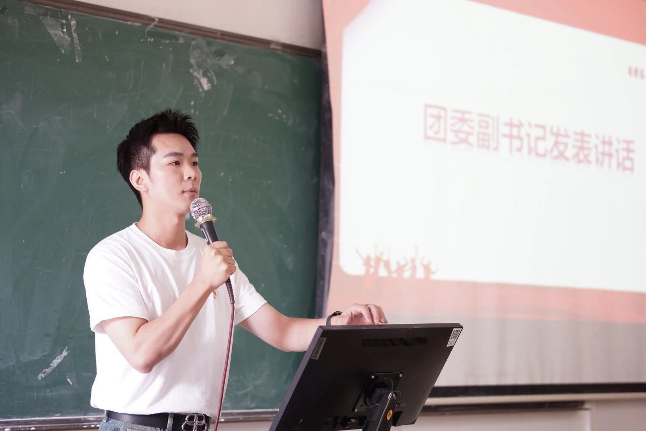 会议伊始,团委副书记陈泽鑫老师上台致辞,他提到,作为团支书,应当坚持正确的价值观和道德标准,引导同学们走向正确的道路;学会倾听和沟通,善于协调和解决问题。团结团支部成员共同营造一个和谐、积极的团支部;积极鼓励团支部成员勇敢追求梦想、克服困难,培养良好的学习习惯,团结带领支部成员做有理想、有道德、有文化、有纪律的新时代青年,为智能工程学院团学工作展示新思路新方法,贡献青春力量。