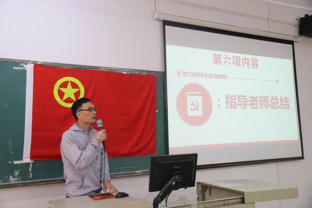 为帮助新干事更好地适应日常工作,加强干部与干事以及指导老师之间的沟通和协助能力,增进团队凝聚力,促进学生入伍与退役的工作顺利开展,智能工程学院学生退役服务队于2023年10月18日在博学楼B栋206教室召开了第一届成员部门培训会。会议人员有学生退役服务队指导老师曾斌及全体成员,由学生退役服务队冯奕俊主持会议。