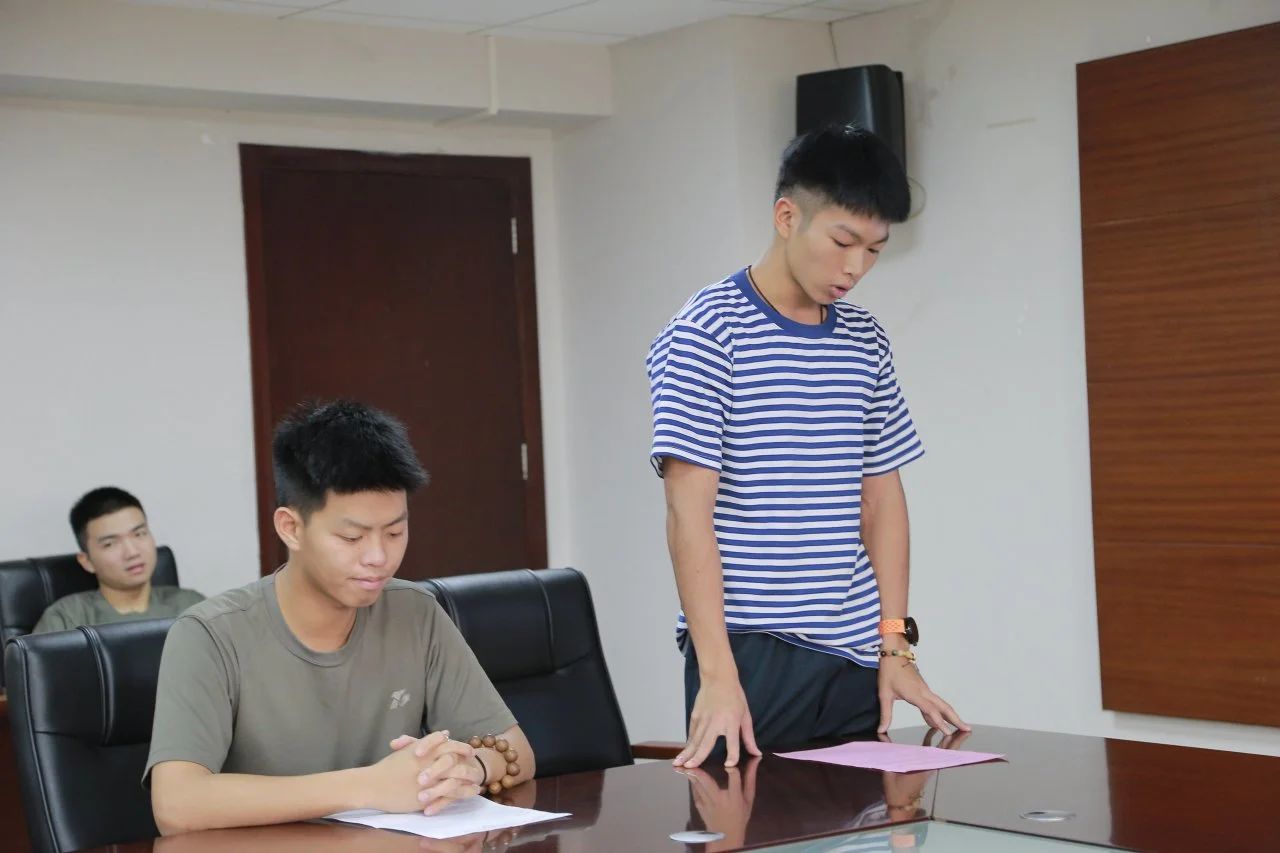 主持人兼退役服务队队长冯奕俊同学热情地介绍了莅临本次会议的各位领导与嘉宾,他们分别是智能工程学院团委副书记陈泽鑫老师、学生退役服务队的指导老师曾斌、学生退役服务队全体成员、以及退役复学学生等。