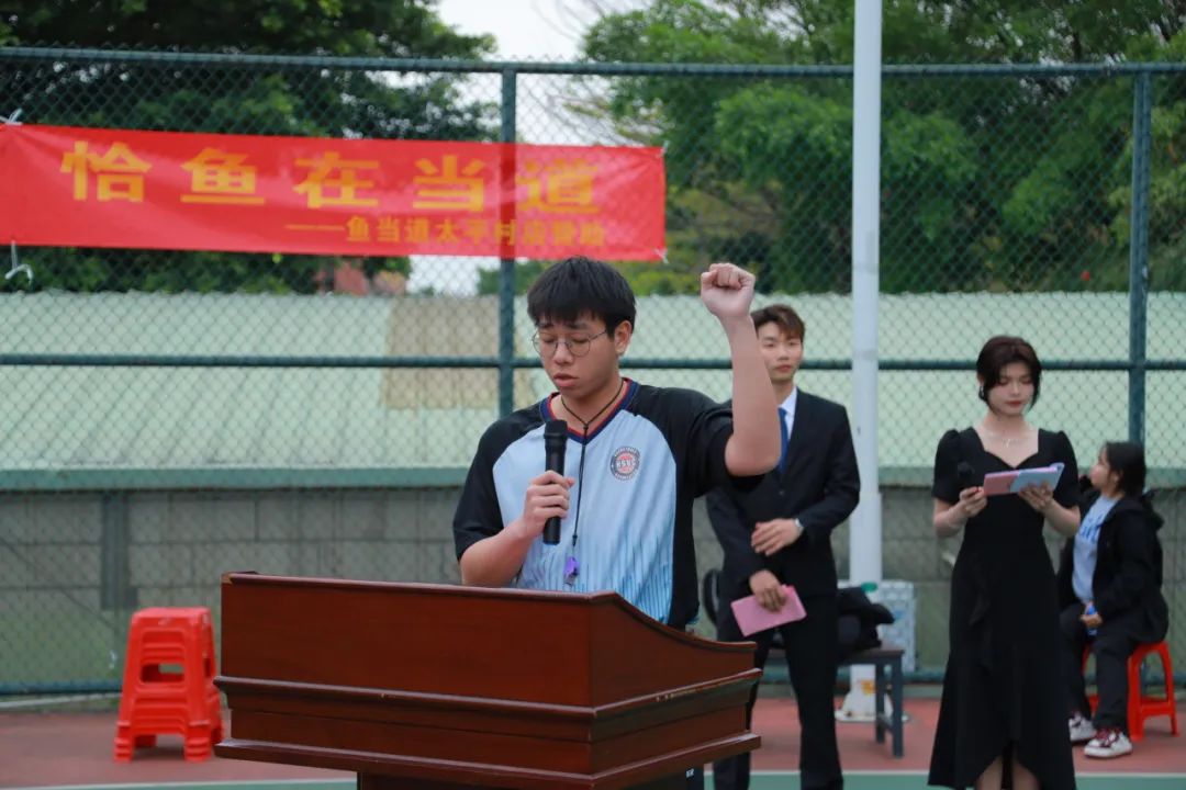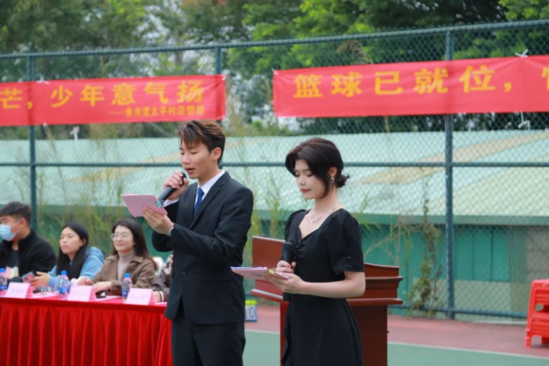 本届“当道杯”新老生篮球赛开幕式主持人介绍莅临本次参与开幕式的领导老师以及辅导员们。