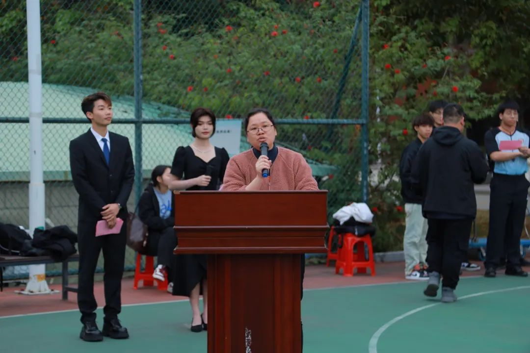 智能工程学院团委书记周燕清老师为本届“当道杯”新老生篮球赛开幕式致辞。